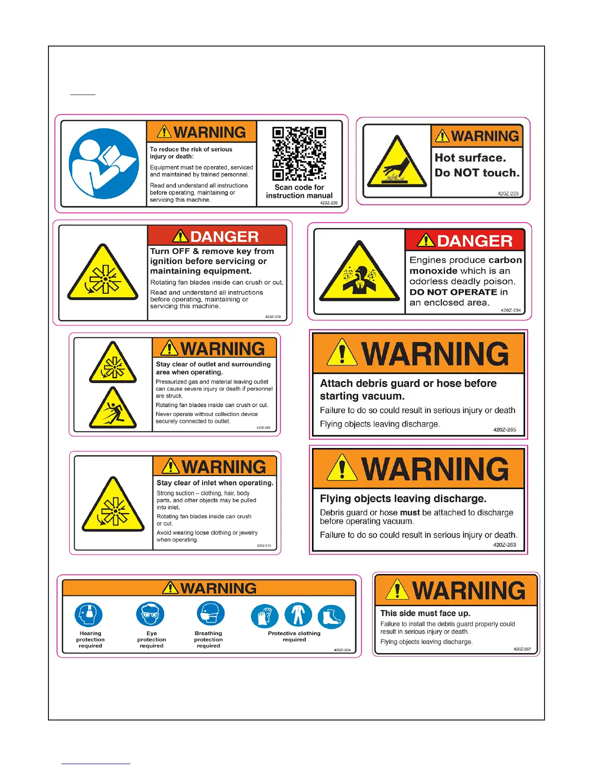 The following safety labels shown are axed on the equipment. (NOTE: Labels 420Z-263 and 420Z-265