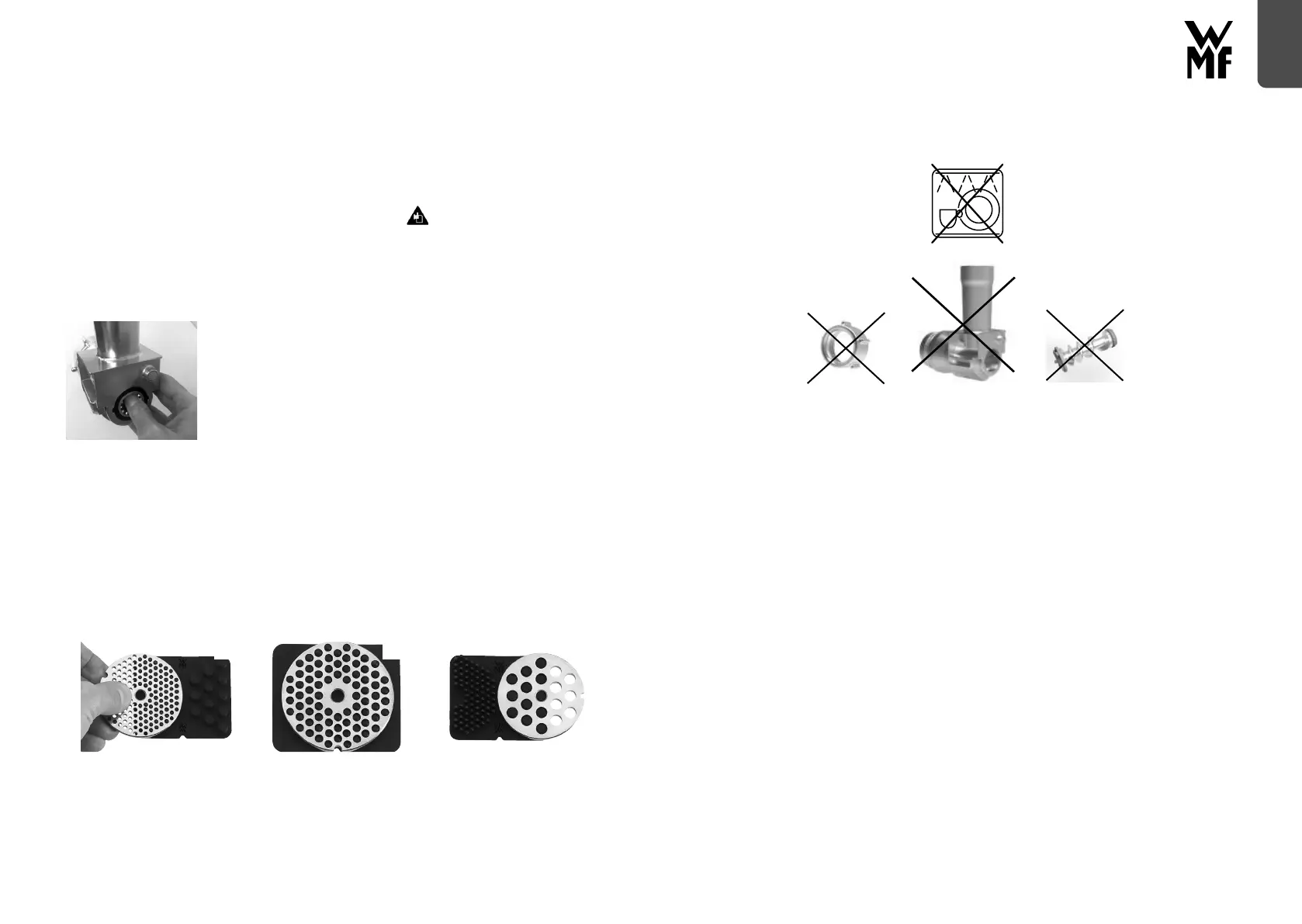 Important! Ne passez jamais la bague fi letée (6), l’accessoire du hachoir (2) ou la vis sans fi n (9) au