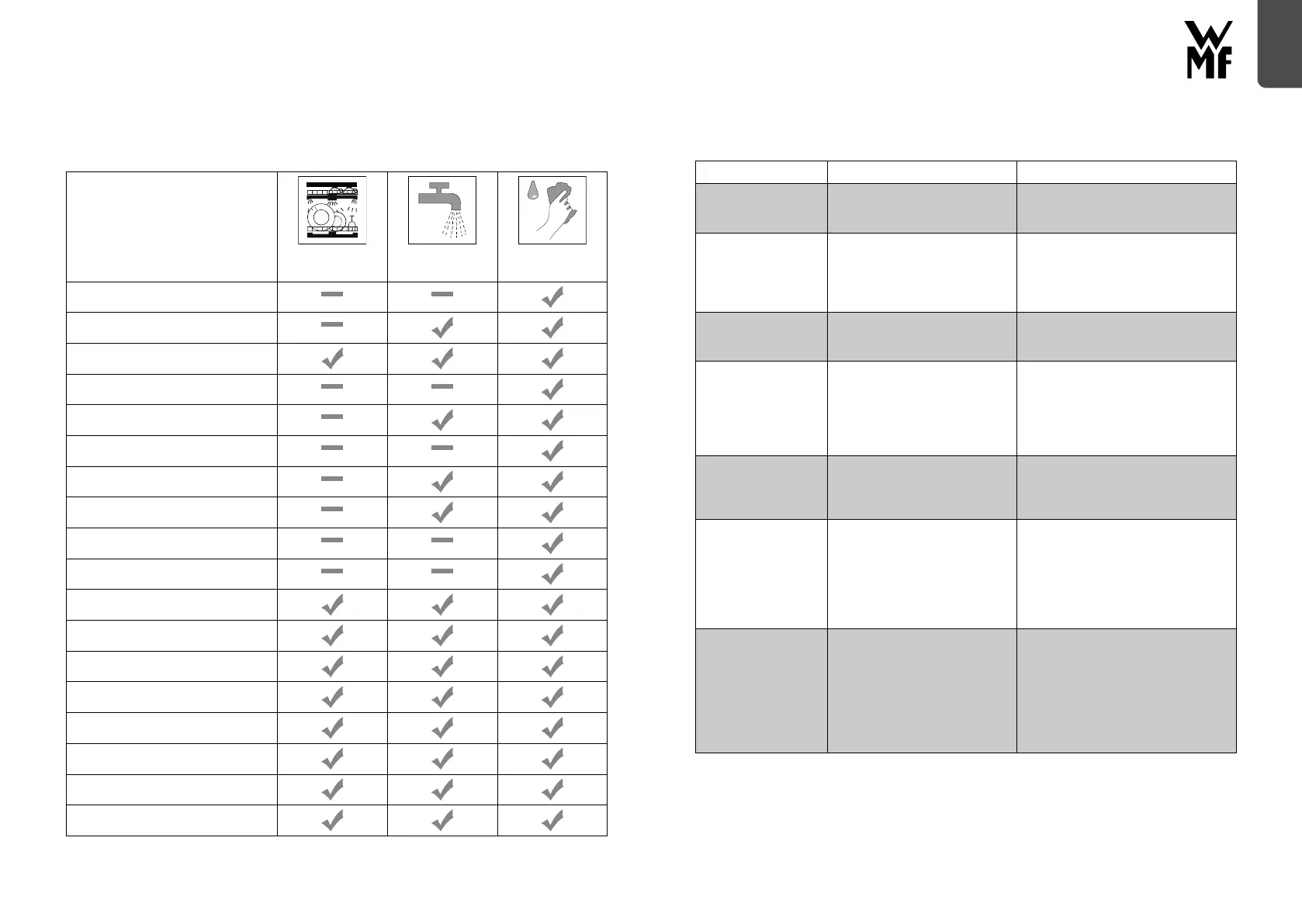 Kontakt WMF-kundeservice, hvis nogle af de problemer, der er anført i tabellen, vedvarer.