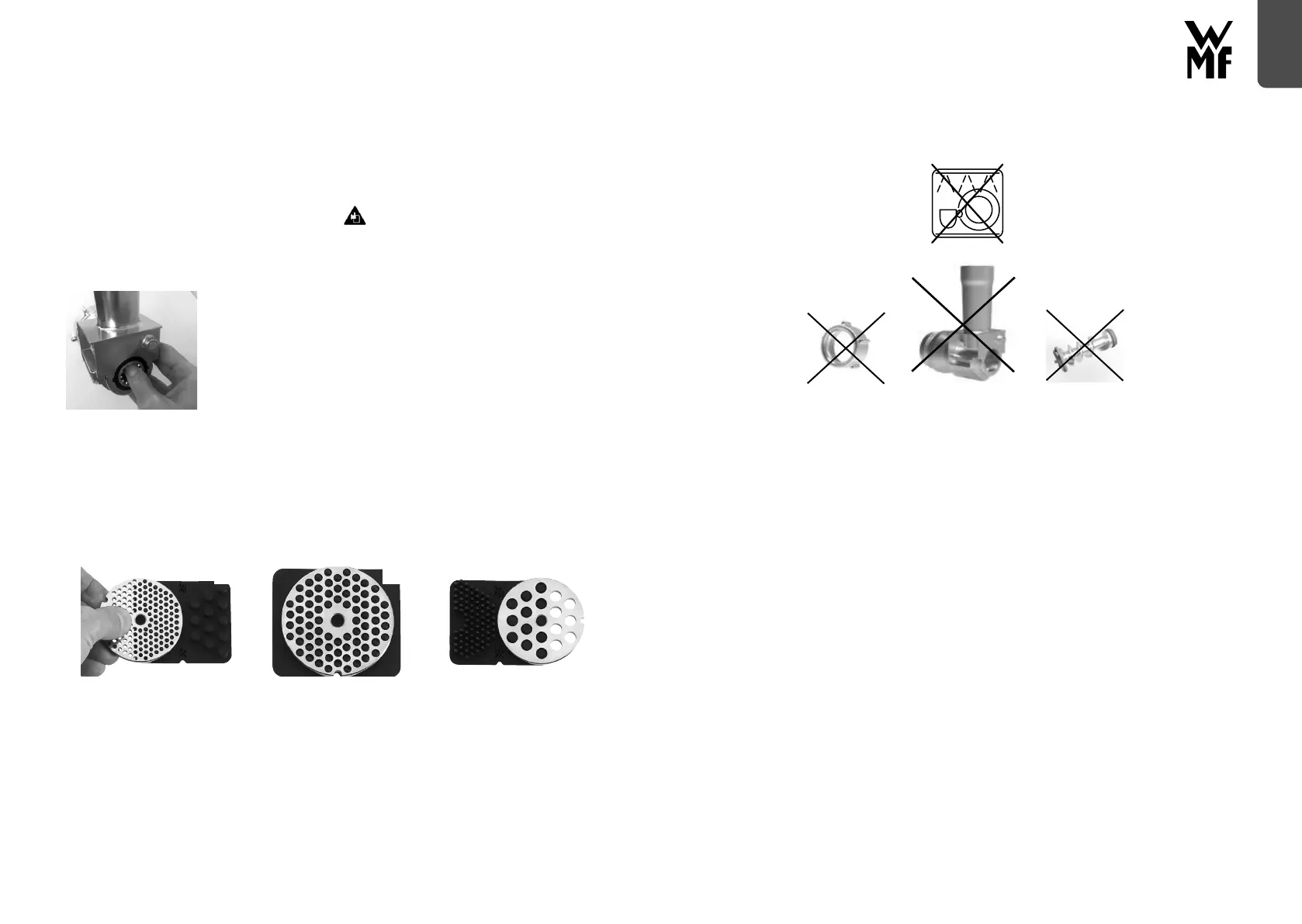 Viktigt! Diska aldrig gängringen (6), kvarntillbehöret (2) eller matningsskruven (9) i diskmaskinen!