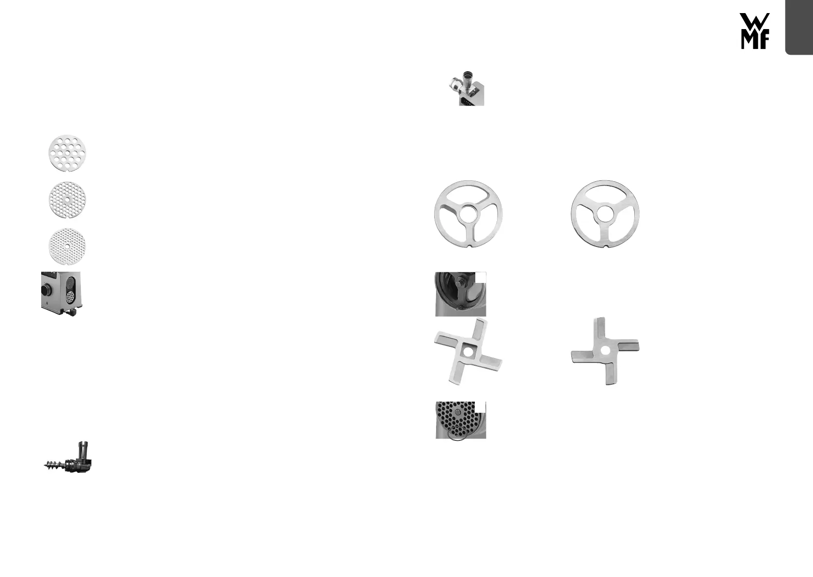 De tre hullskivene (13, 14, 15) brukes til kverning av kjøtt, fi sk og grønnsaker. Avhengig av egenska-