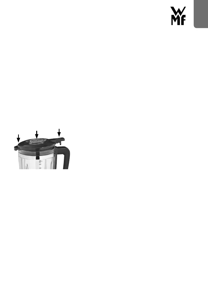 vasten ja paina kansi kevyesti sekoituskannuun (1). Paina sitten