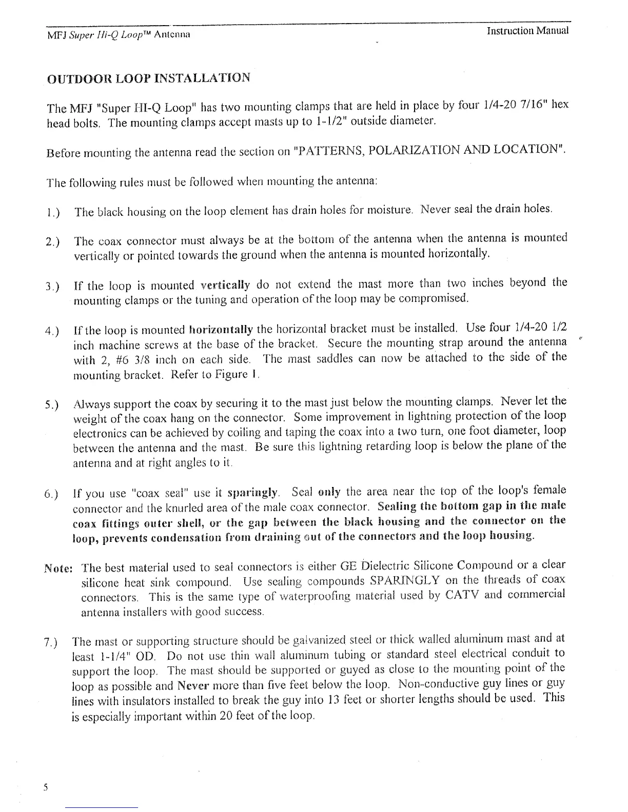 MFJ MFJ-1786 - OUTDOOR LOOP INSTALLATION; Mounting Rules and Precautions