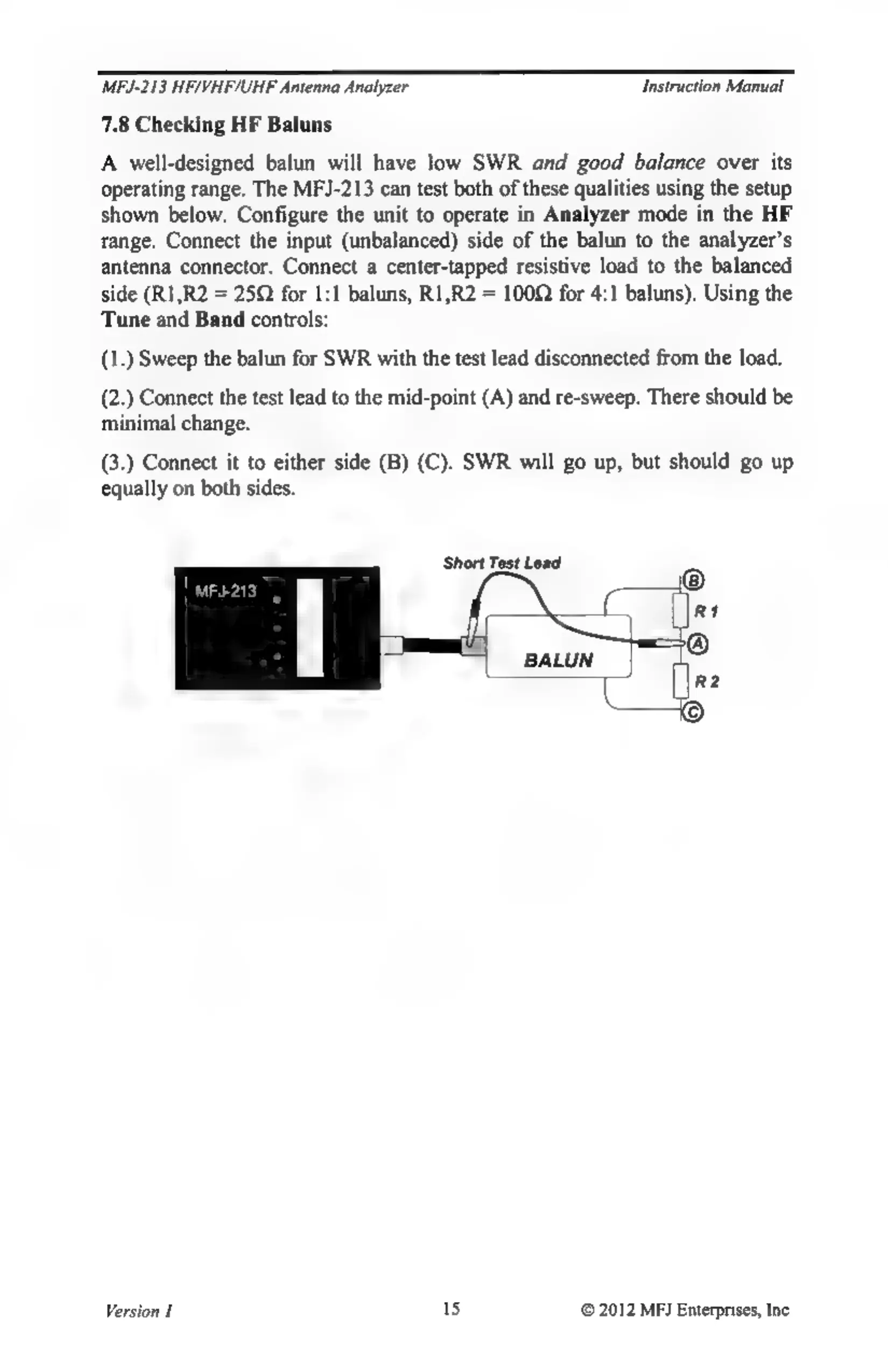 MFJ MFJ-213 - Checking HF Baluns