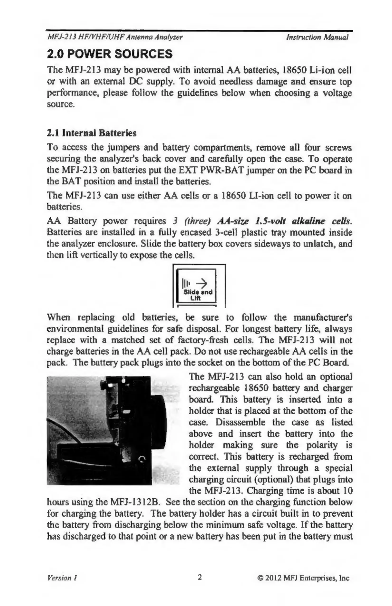MFJ MFJ-213 - Power Sources; Internal Batteries