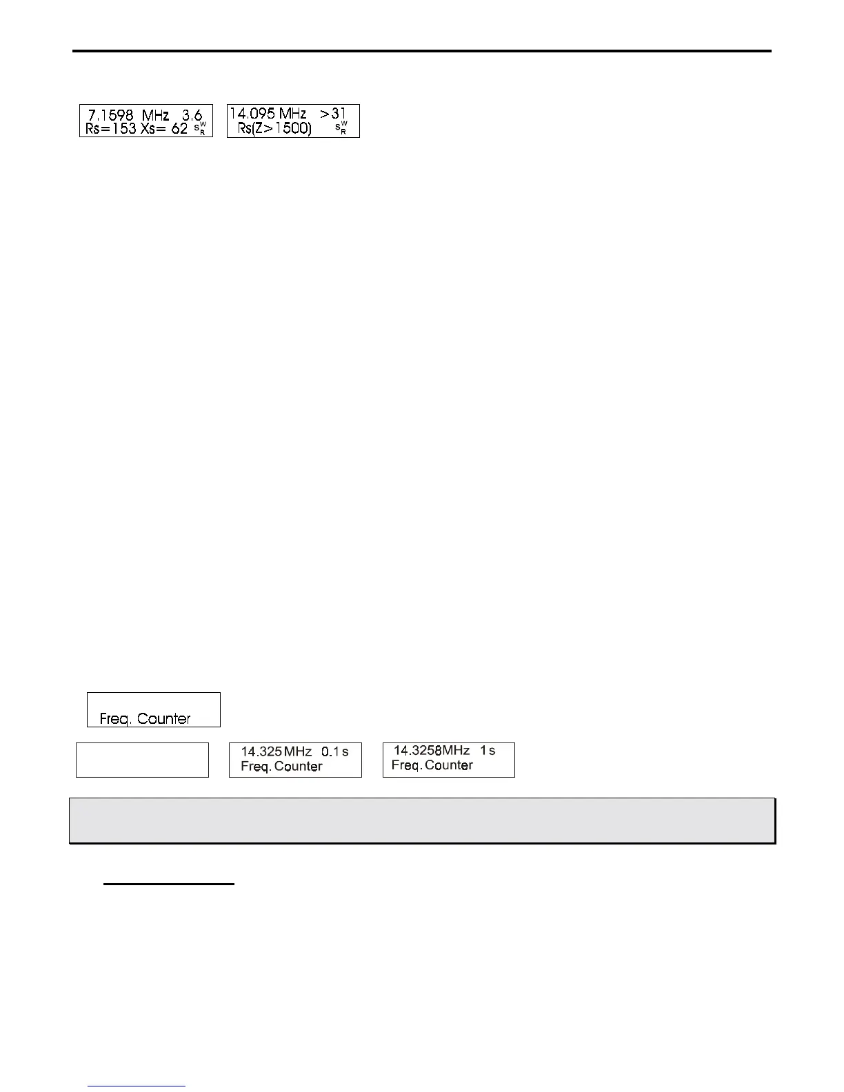 (LCD) indicates the test frequency and approximate loss of any 50 ohm coaxial cable, attenuator pad, or