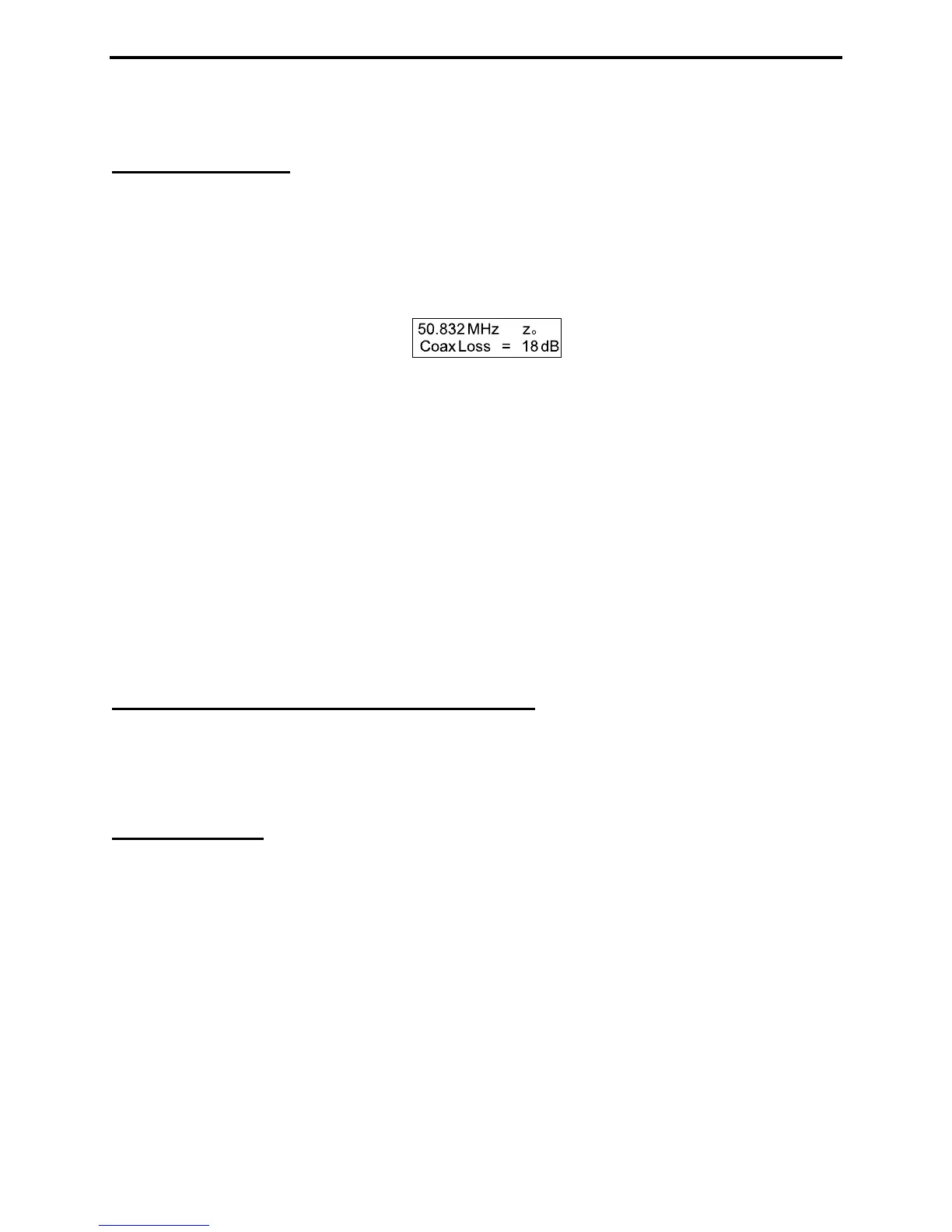 Coax Loss is measured for the feedline Zo selected in 5.6.1. It is important that the line is not terminated