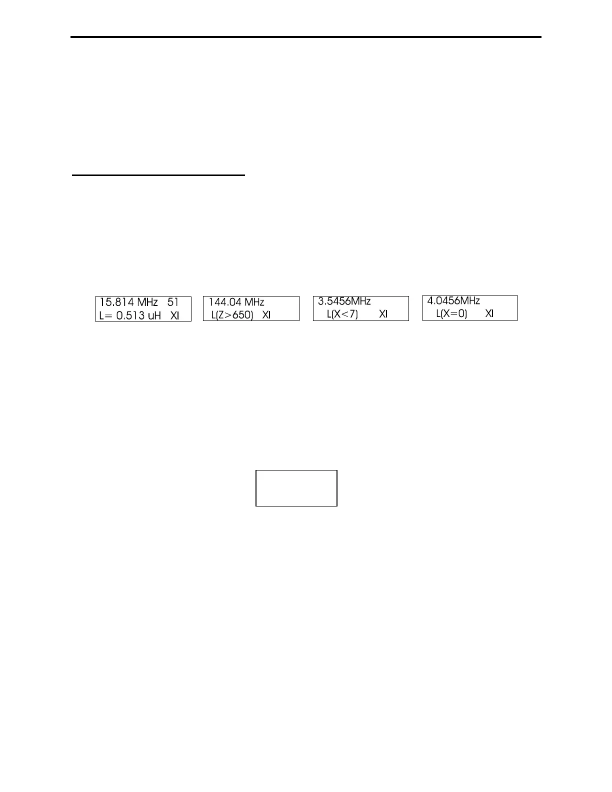 top line of the working display shows the Frequency in MHz and the Inductive Reactance (XL) of the
