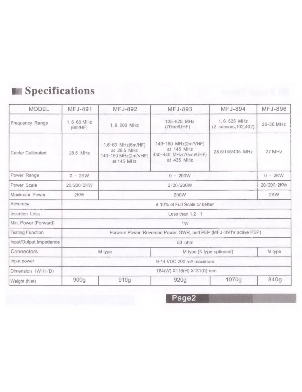 MFJ MFJ-891 - Specifications