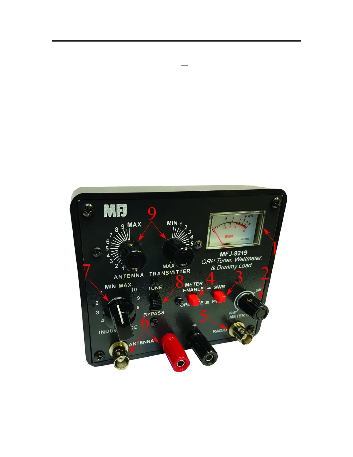 MFJ-9219 QRP Tuner, Wattmeter, & Dummy Load Instruction & Technical Manual