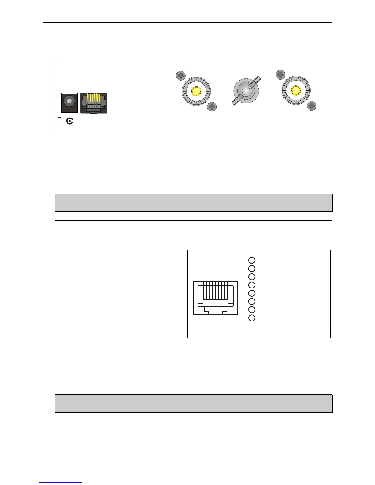 • Power: This jack accepts a standard 2.1 × 5.5 mm coaxial plug with positive center and negative