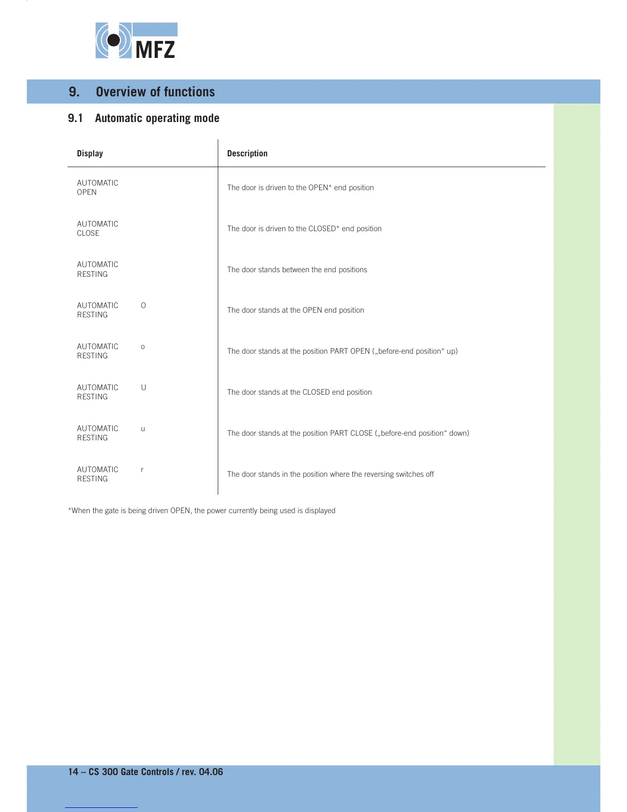 14 – CS 300 Gate Controls / rev. 04.06