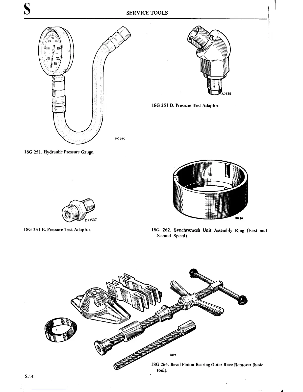 MG MGB - SERVICE TOOLS; Pressure Test Adaptor; Hydraulic Pressure Gauge; Synchromesh Unit Assembly Ring (First and Second Speed)
