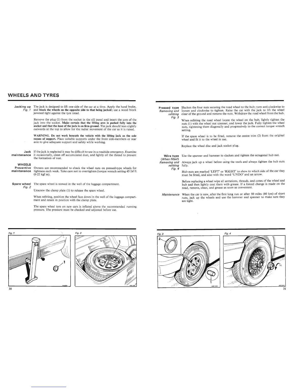 Fig. 1 and block the wheels on the opposite side to that being jacked; use a wood block