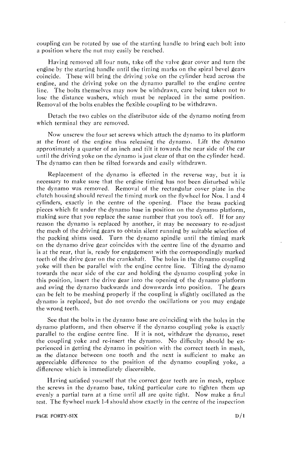 the coupling yoke and re-insert the dynamo. No difficulty should be ex-