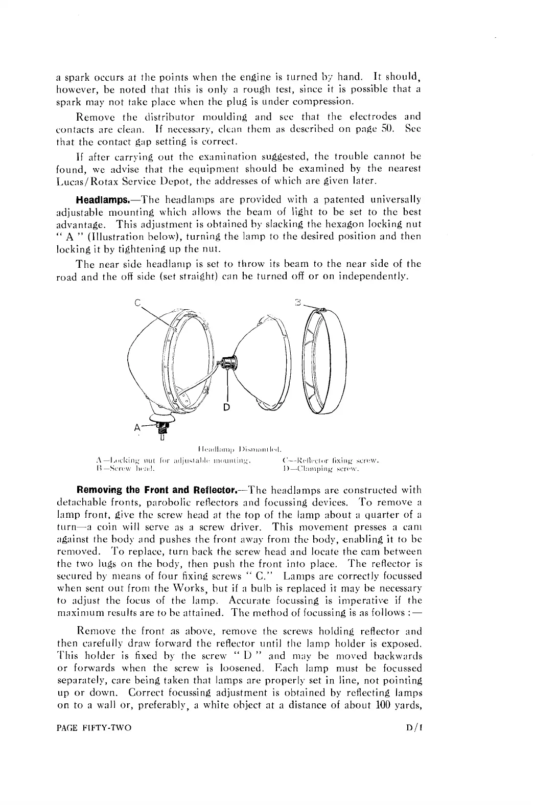 Removing the Front and Reflector.-The headlamps are constructed with