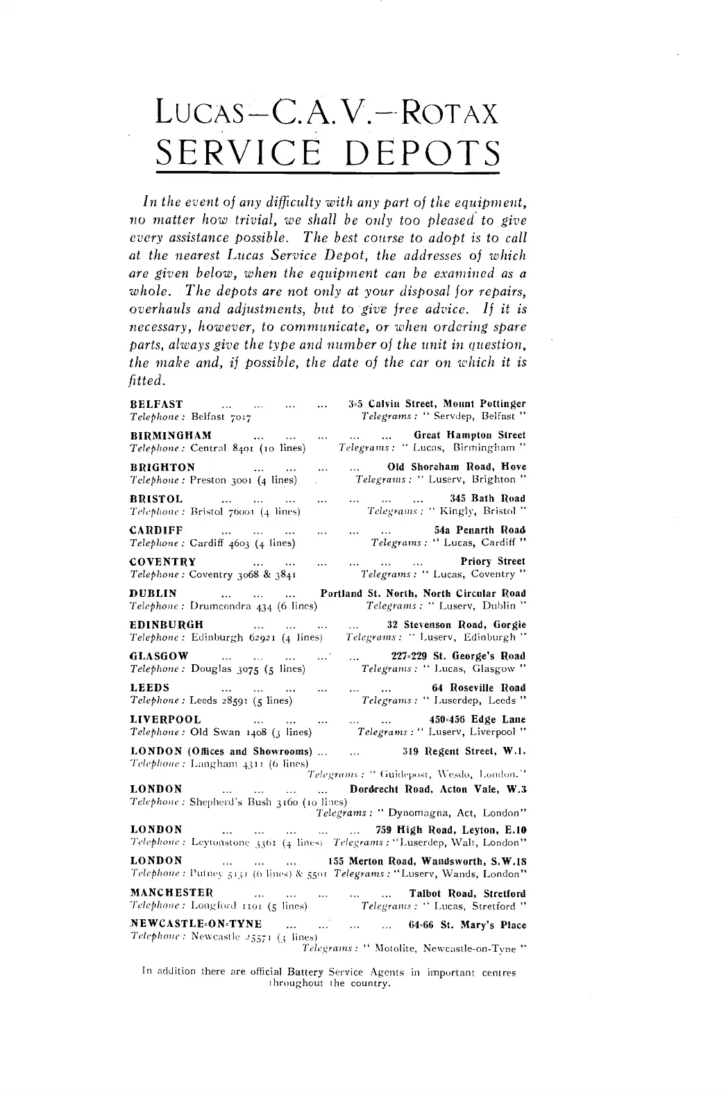 at the nearest Lucas Service Depot, the addresses of which