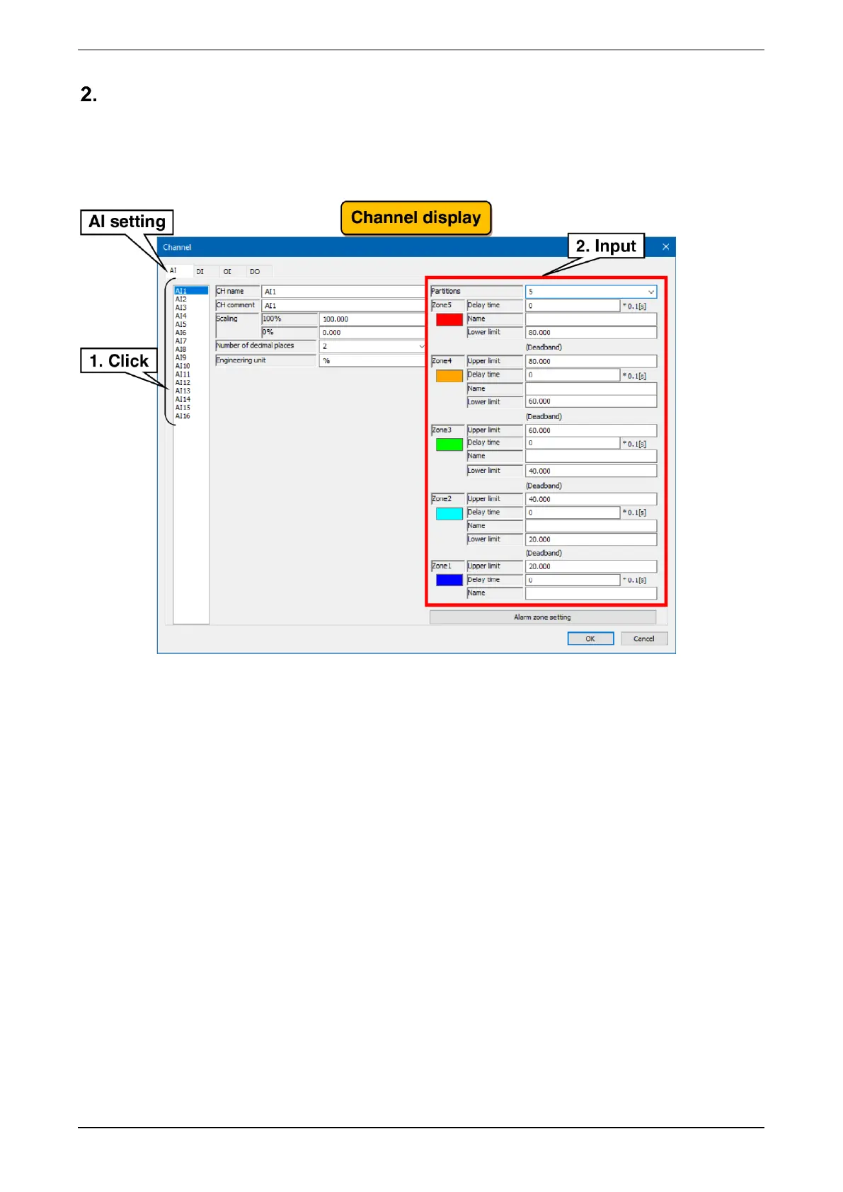 (2) Make the zone setting. In reference to the table below, set the various parameters.