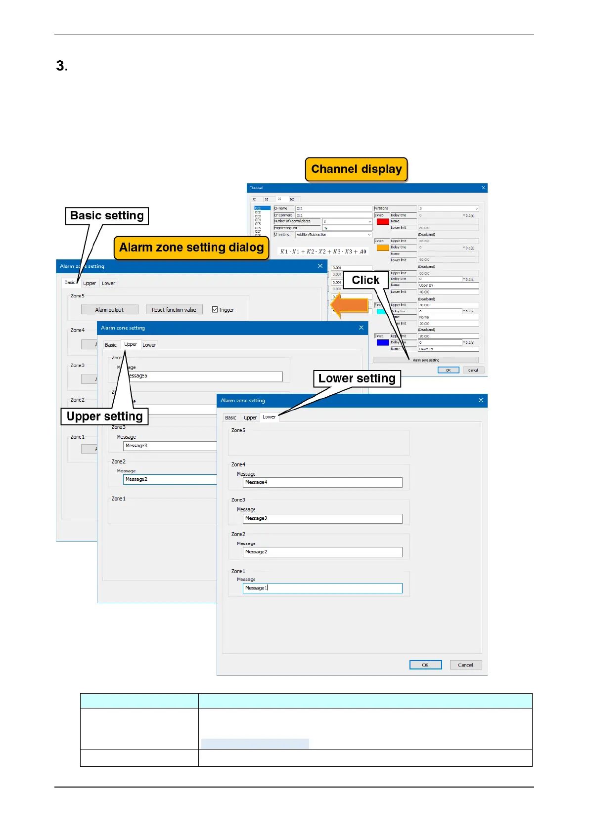(1) Clicking the “Alarm zone setting” button on the “Channel” display show the “Alarm zone setting” dialog. If