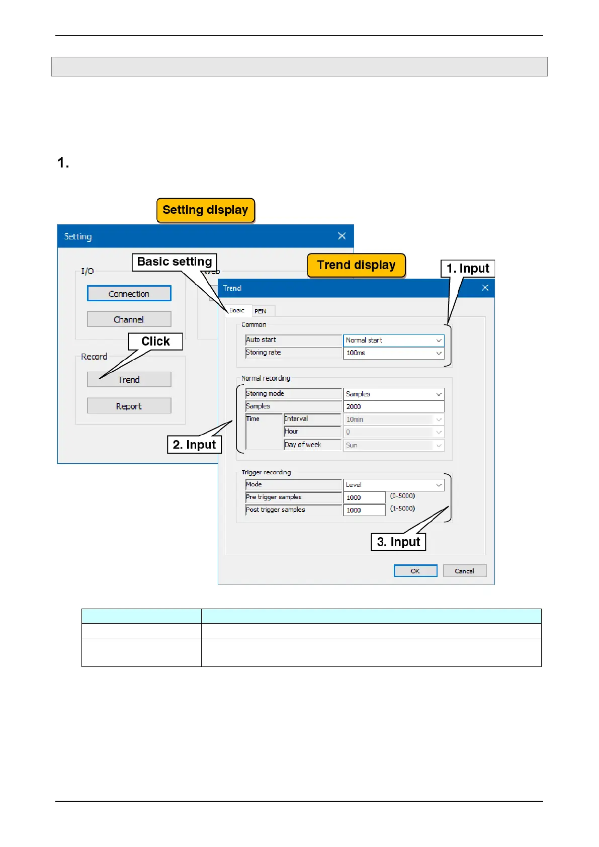Setting 3.4 Recording trend
