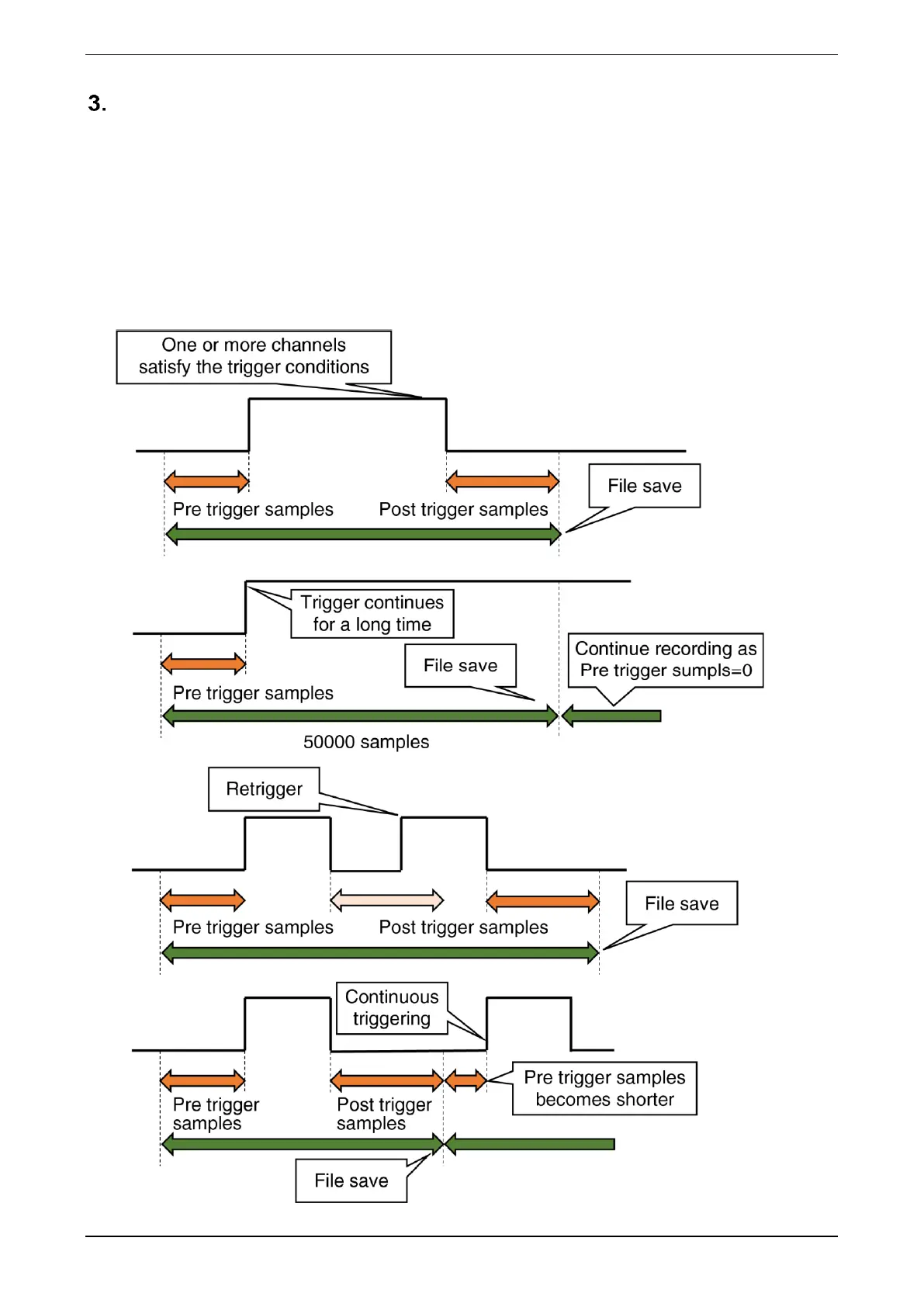 samples to be saved in the trend file should be set in [Pre trigger samples] and [Post trigger samples]. The