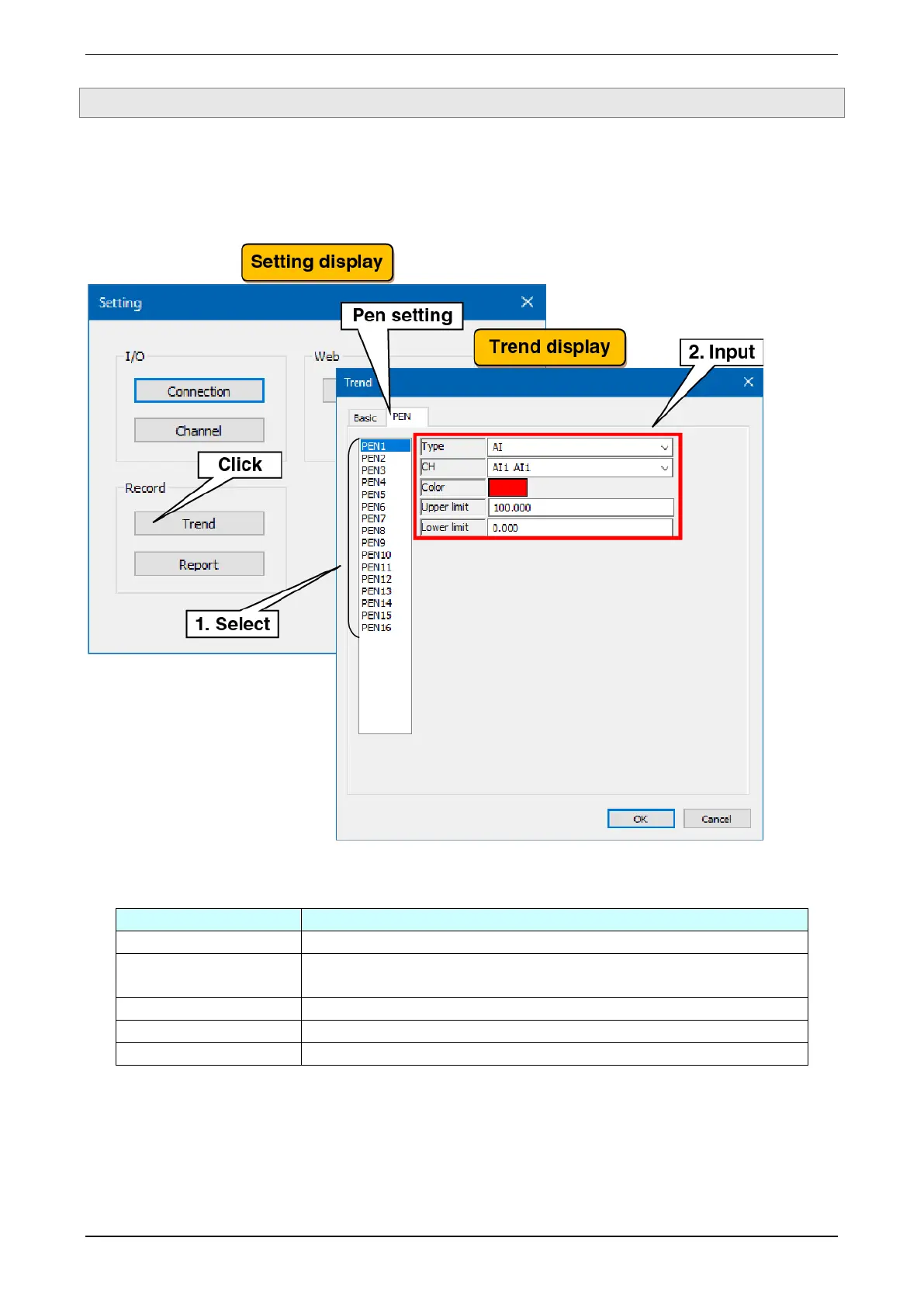 (3) In the same way, set all pens that are recorded to trend files and showed on the WEB display. It is also