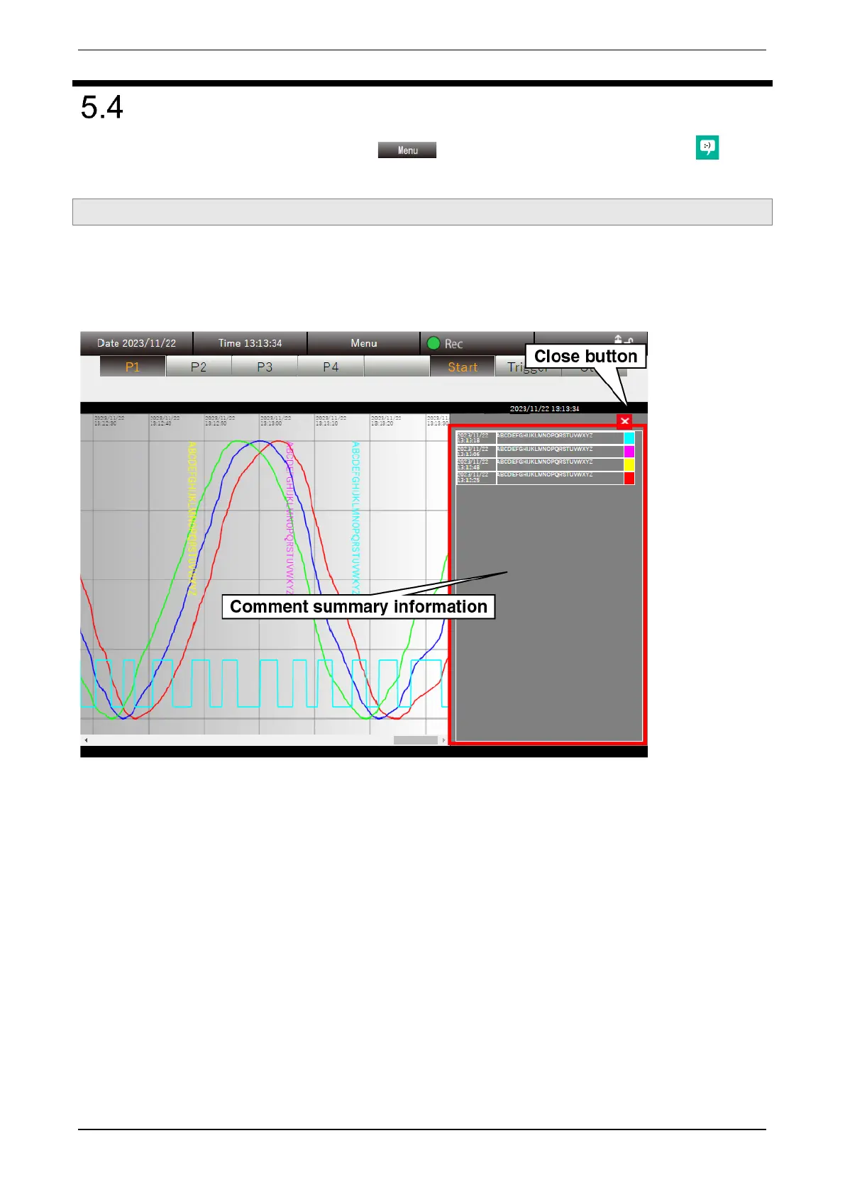 Comments summary information is showed in the “Trend area” of the “Trend” display, where the digital display