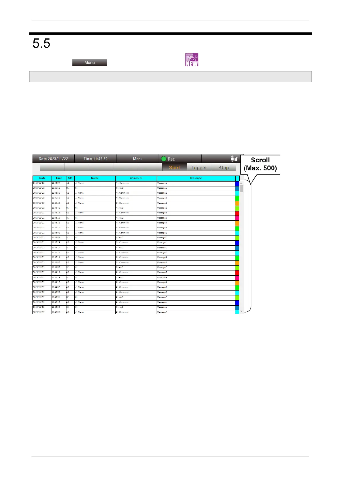 On the Event view display, the event information on the 500 most recent events is displayed. It is also updated