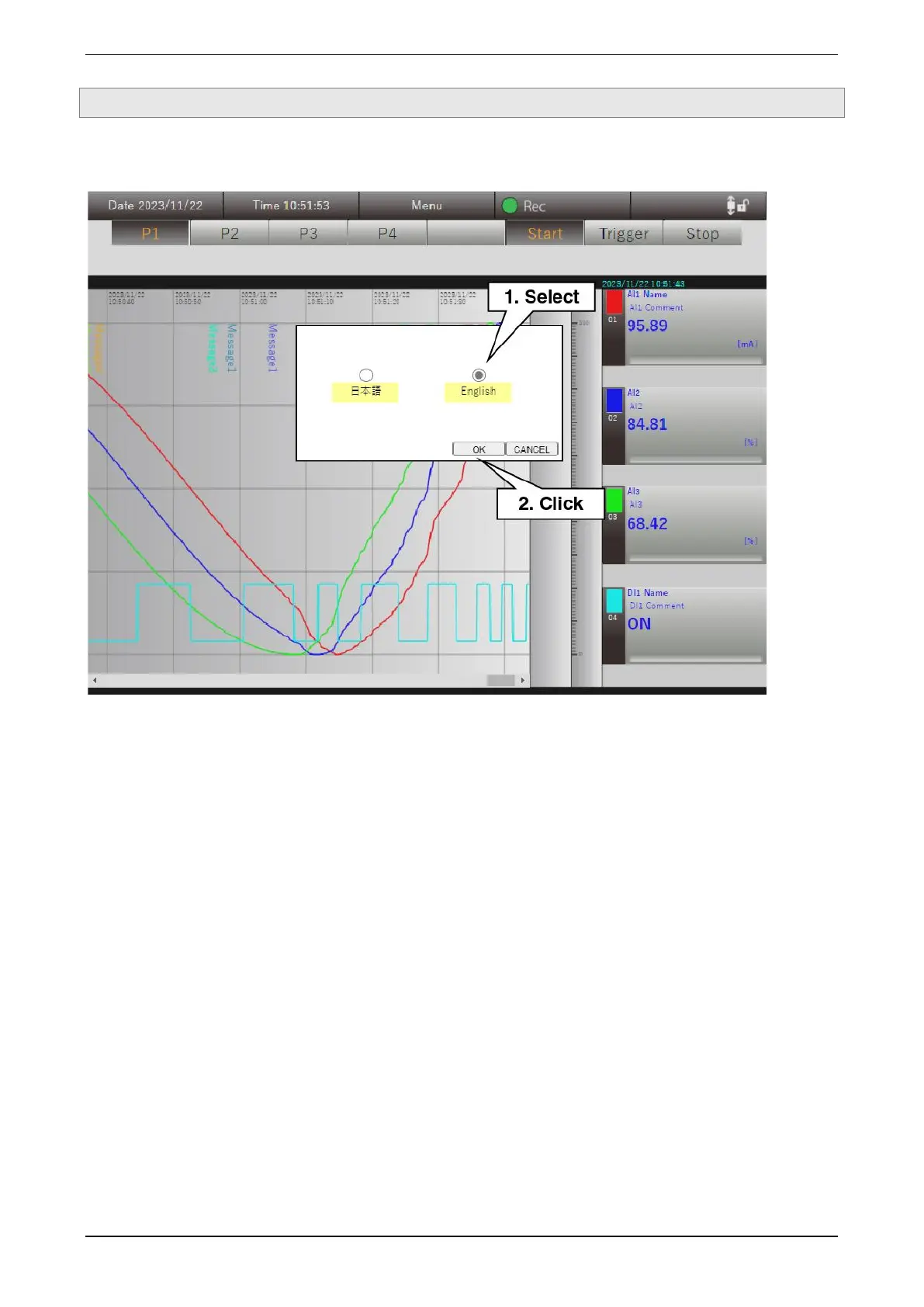Select the language to be used from “Japanese” or “English,” and click the [OK] button to switch the