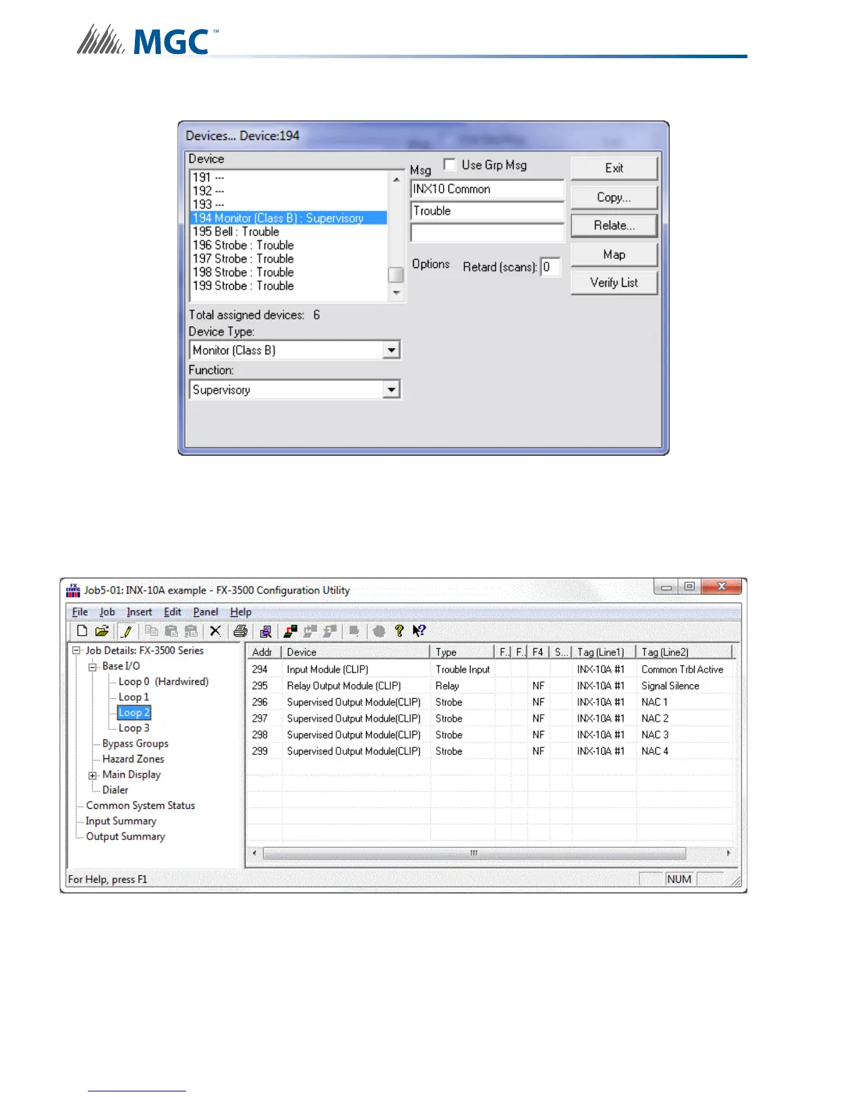 MGC INX-10A Series - Figure 22 Secutron MR-2100;2200;2900 Configurator Settings - INX-10 A Single Stage with Basic Reporting and Power Supply Output; Figure 23 FX-3500;3500 RCU;MR-2350 Configurator Settings - INX-10 A Single Stage with Basic Reporting and Power Supply Output