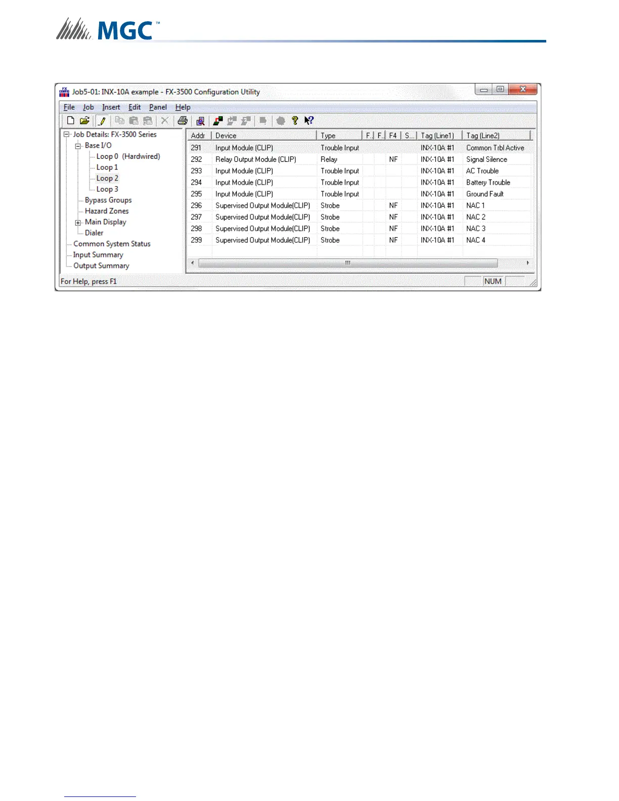 MGC INX-10A Series - Figure 26 FX-3500;3500 RCU;MR-2350 Configurator Settings - INX-10 A Single Stage with Enhanced Reporting and Power Supply Output