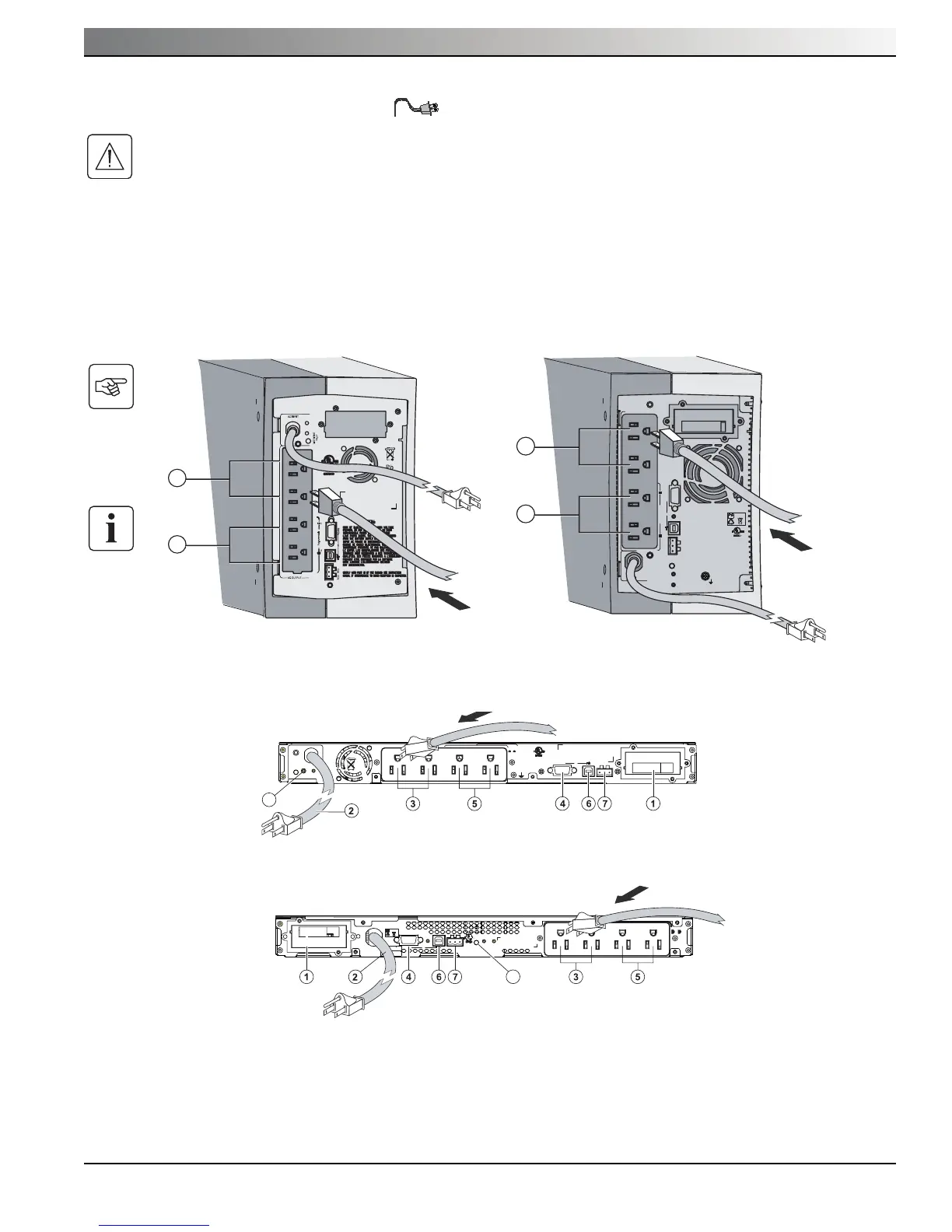 2. Branchez les charges dans les prises de l’UPS, comme il est indiqué. Il est préférable de brancher les charges