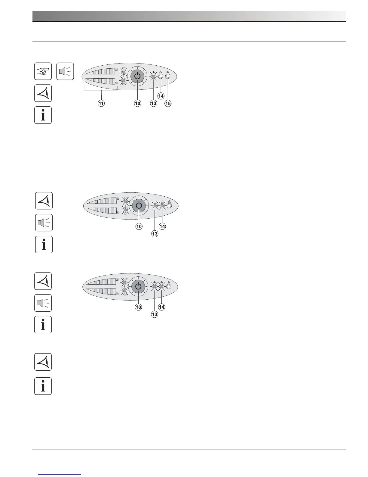 Le bouton (10) et les voyants (13) et (14) sont