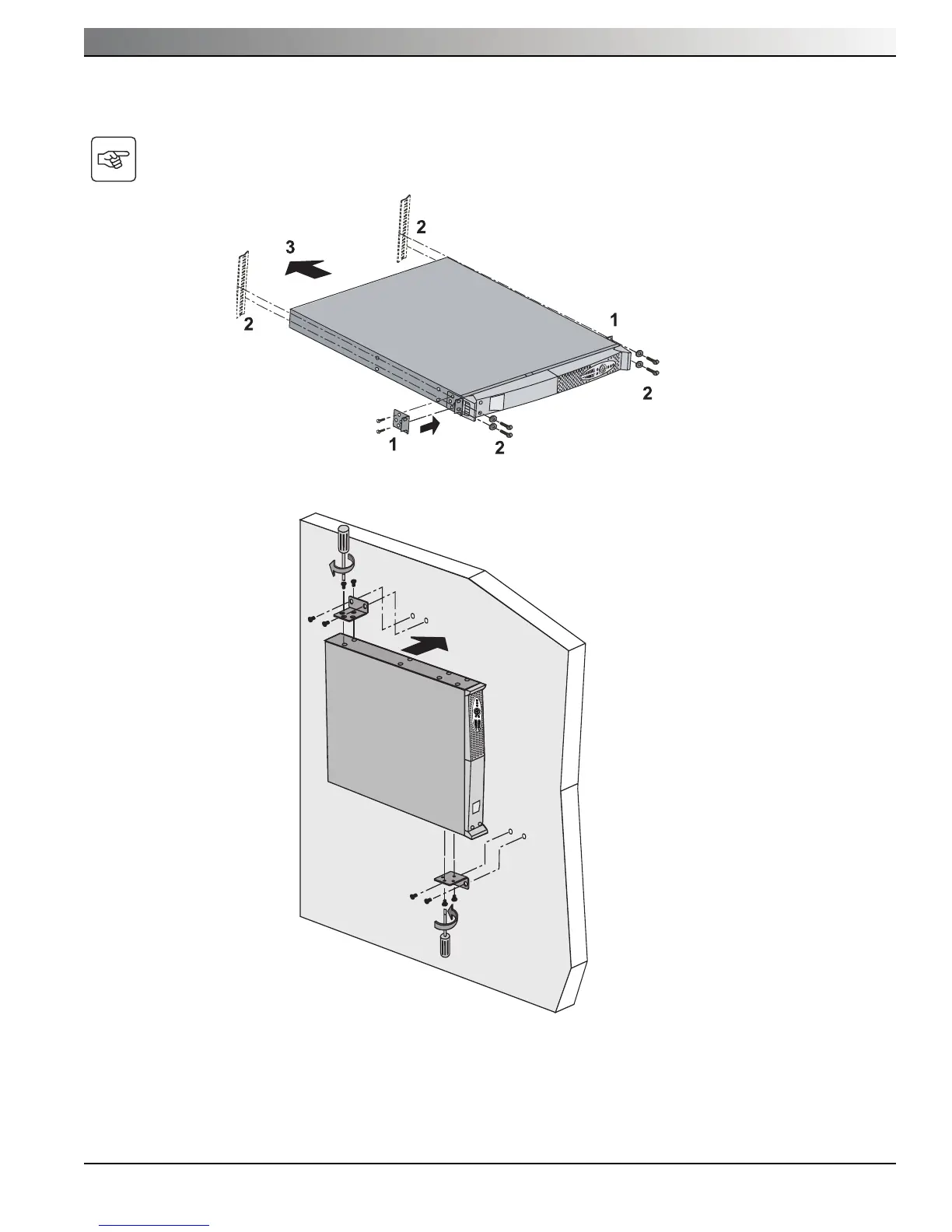 Los herrajes necesarios son provistos por MGE Office Protection Systems.