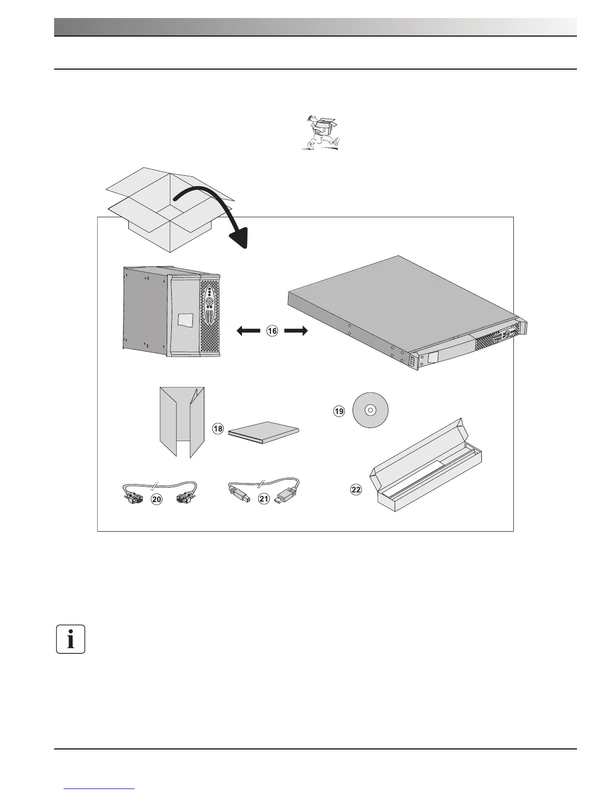 (22) Mounting kit for 19-inch bays (rack model only)