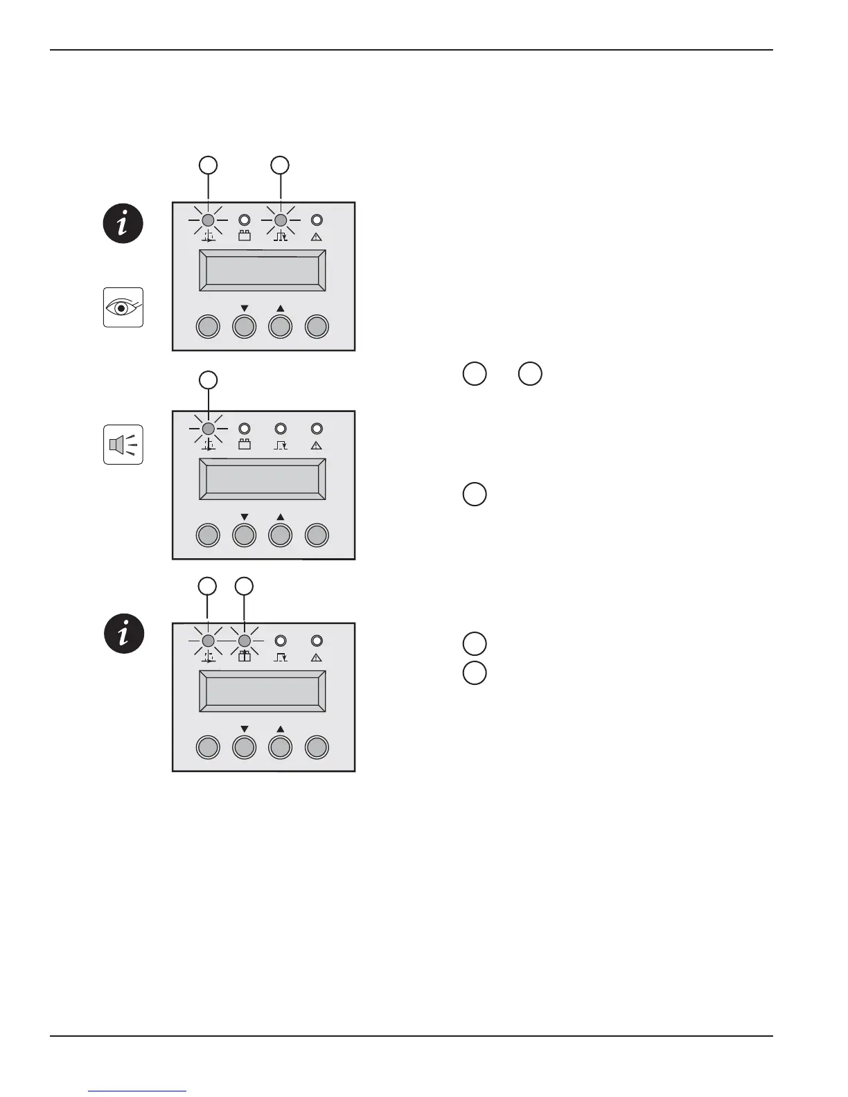 The audio alarm sounds intermittently.