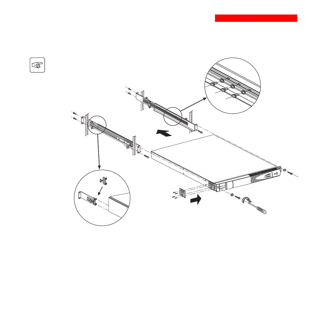 The rails and the necessary mounting hardware are supplied by MGE UPS SYSTEMS.