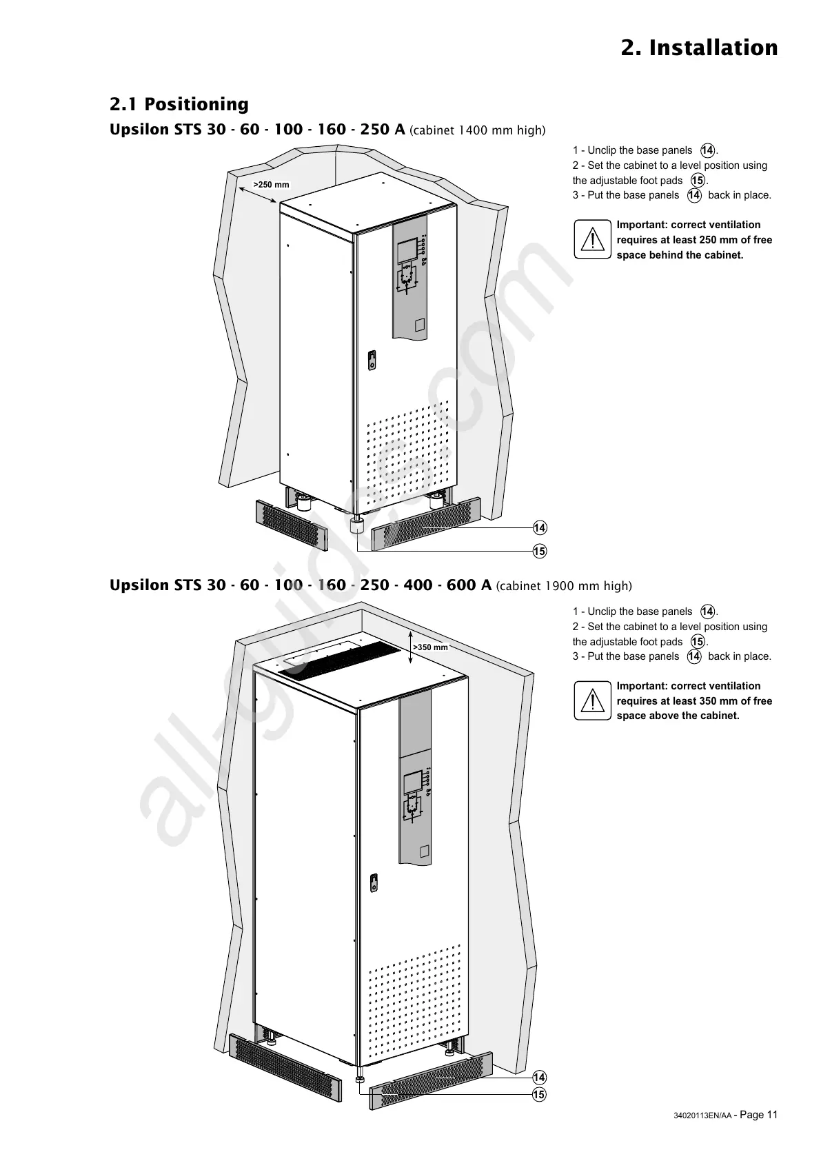 Upsilon STS 30 - 60 - 100 - 160 - 250 A (cabinet 1400 mm high)