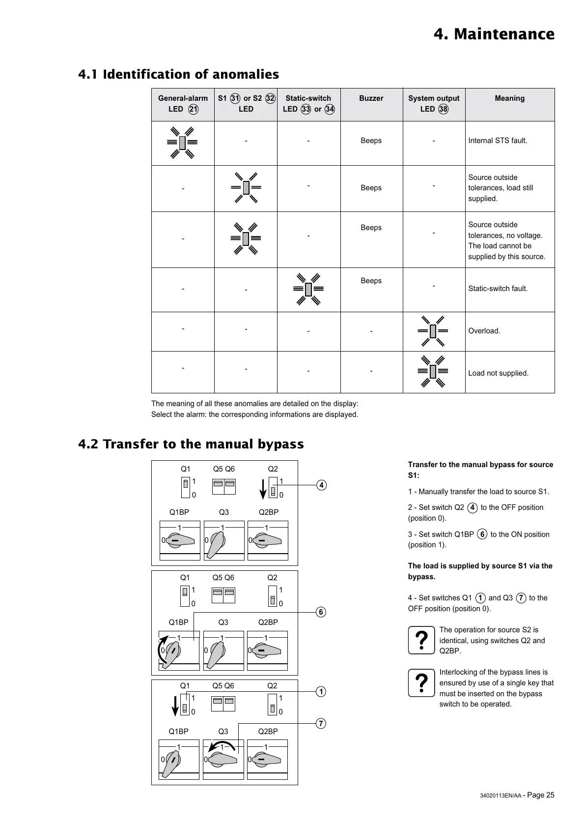 4.2 Transfer to the manual bypass