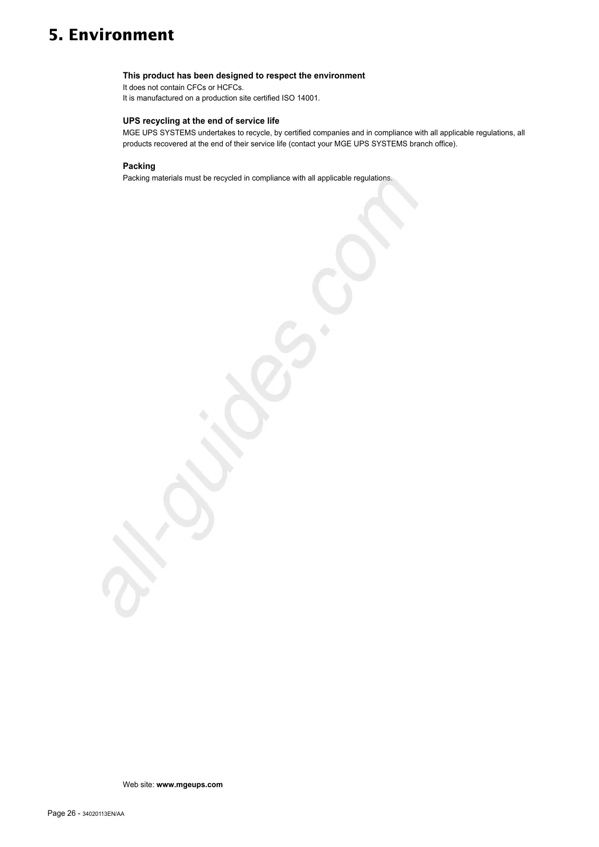 products recovered at the end of their service life (contact your MGE UPS SYSTEMS branch office).