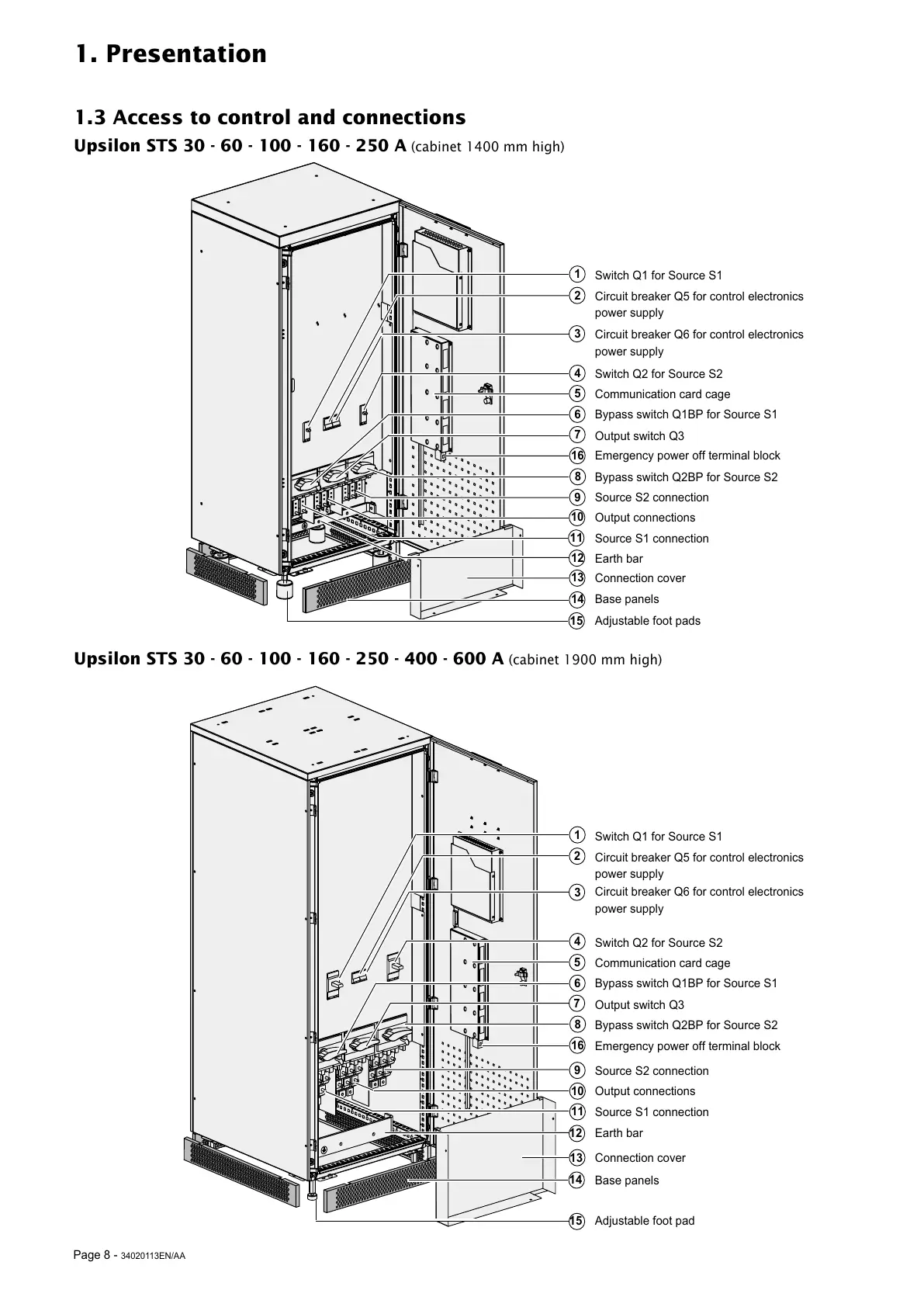 Upsilon STS 30 - 60 - 100 - 160 - 250 A (cabinet 1400 mm high)