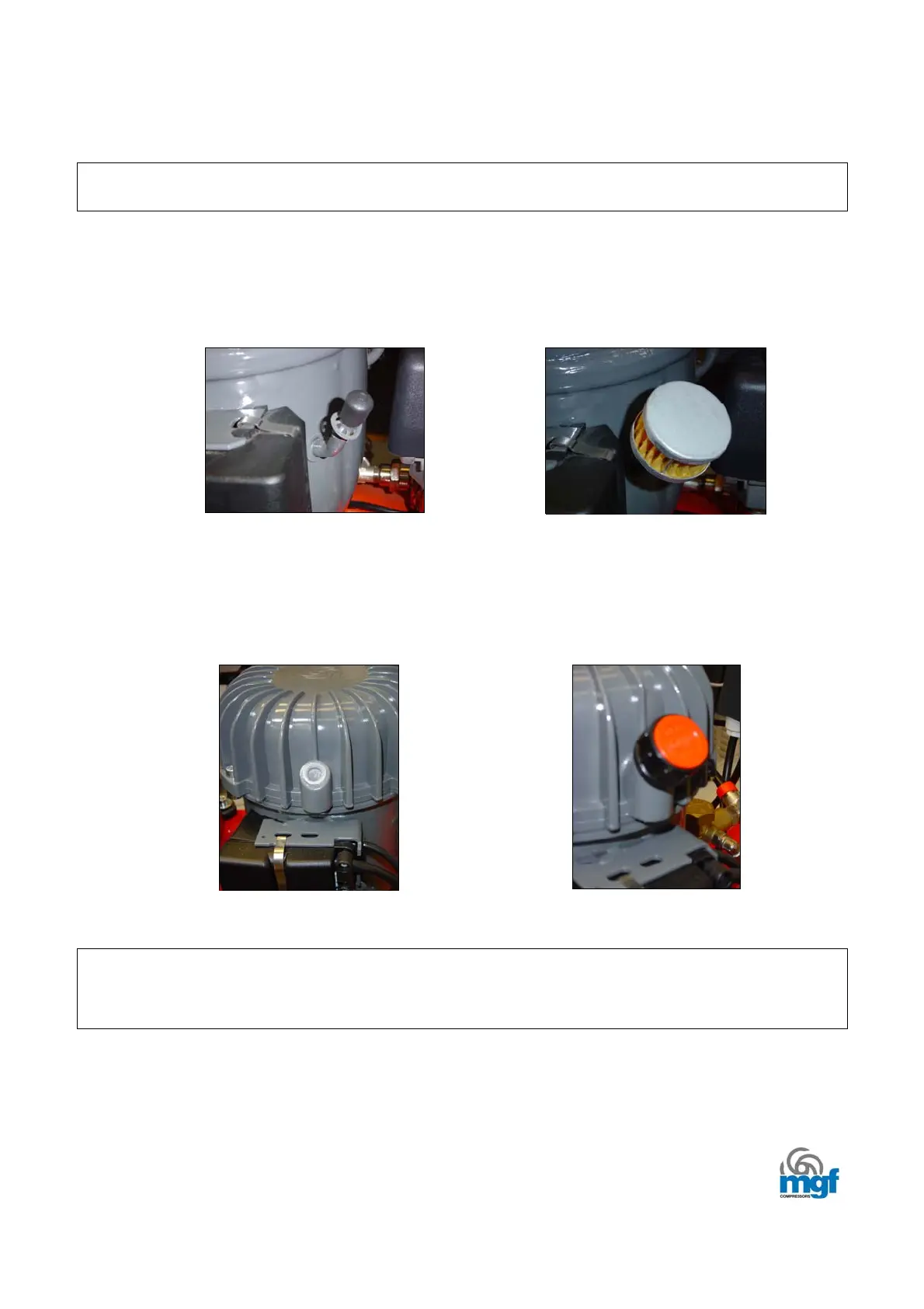 1. Antes de encender el compresor – Sólo bombas versión 17 Lt. y 30 Lt.: extraiga el tapón