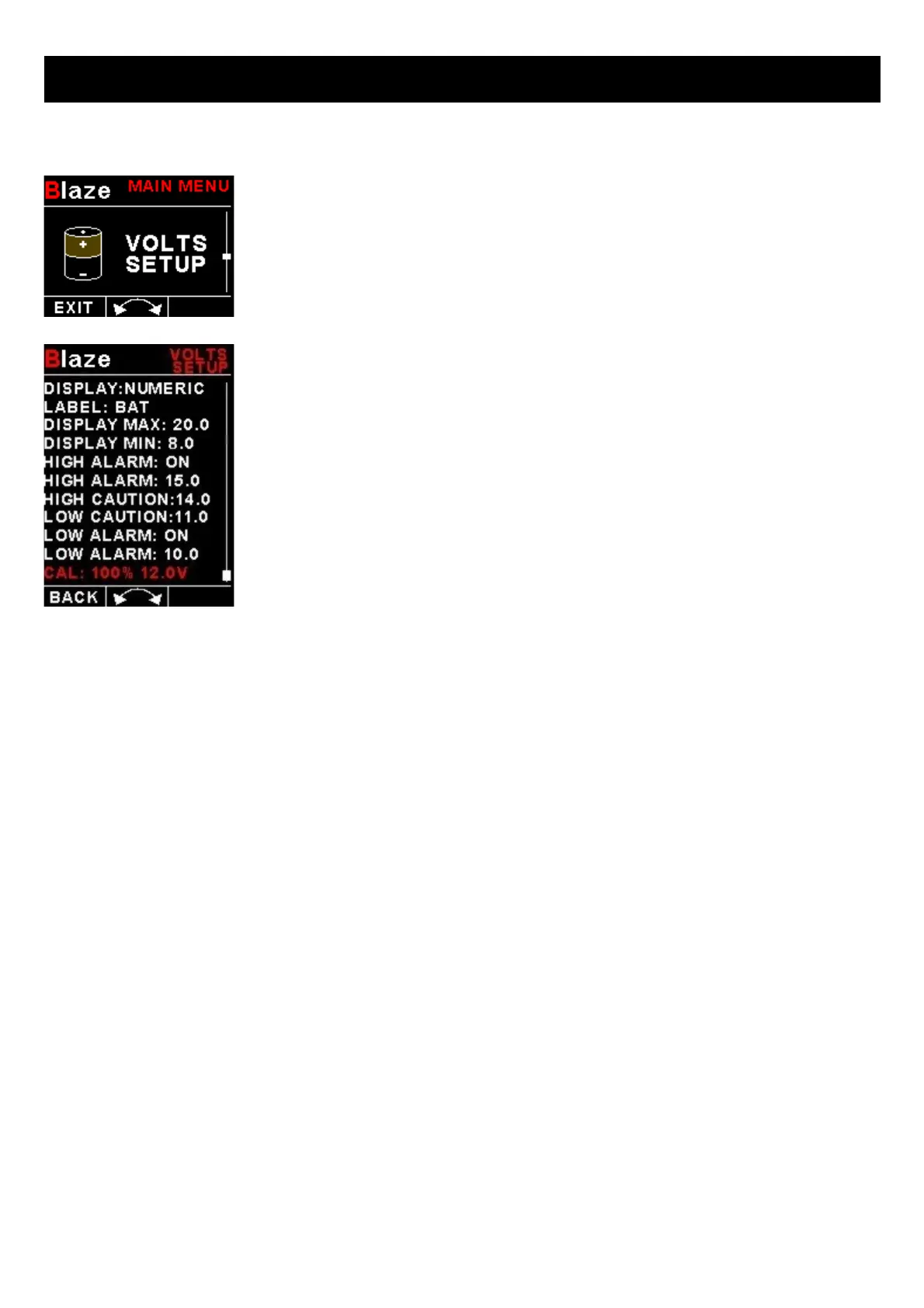 displayed as a bargraph. Select “OFF” to disable the volts display.