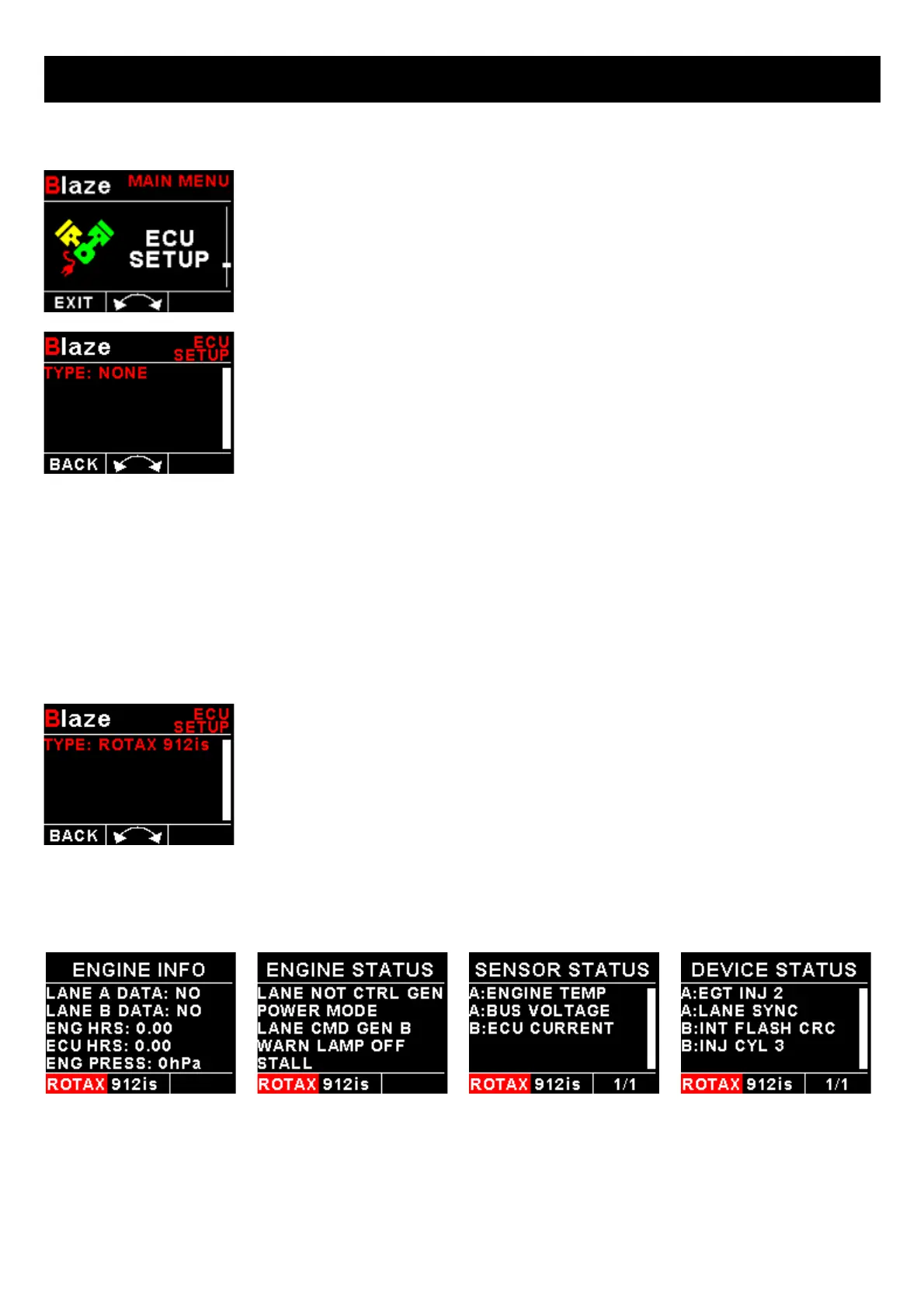 The Rotax ECU transmits various status messages. These can be observed in the Rotax 912is main display pages,