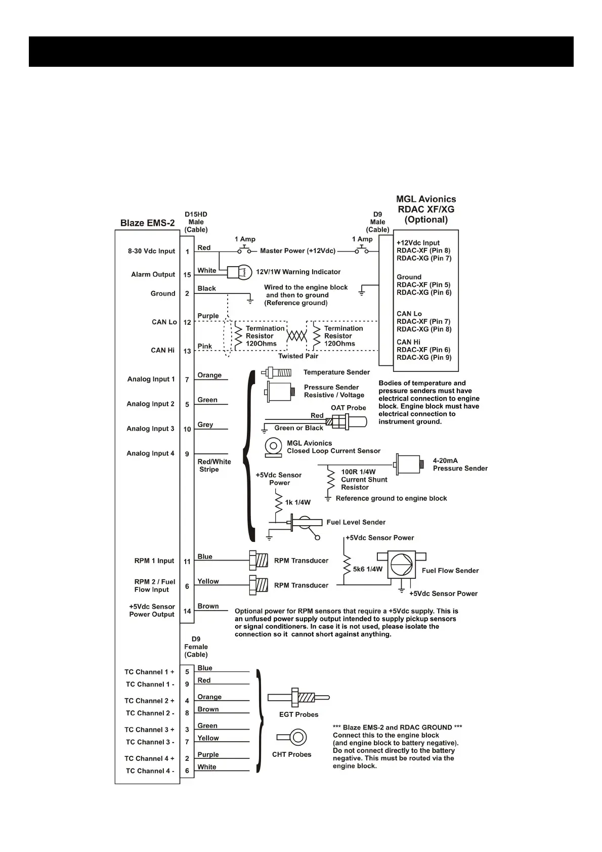MGL Avionics Blaze EMS-2 - Installation; Connection Diagram