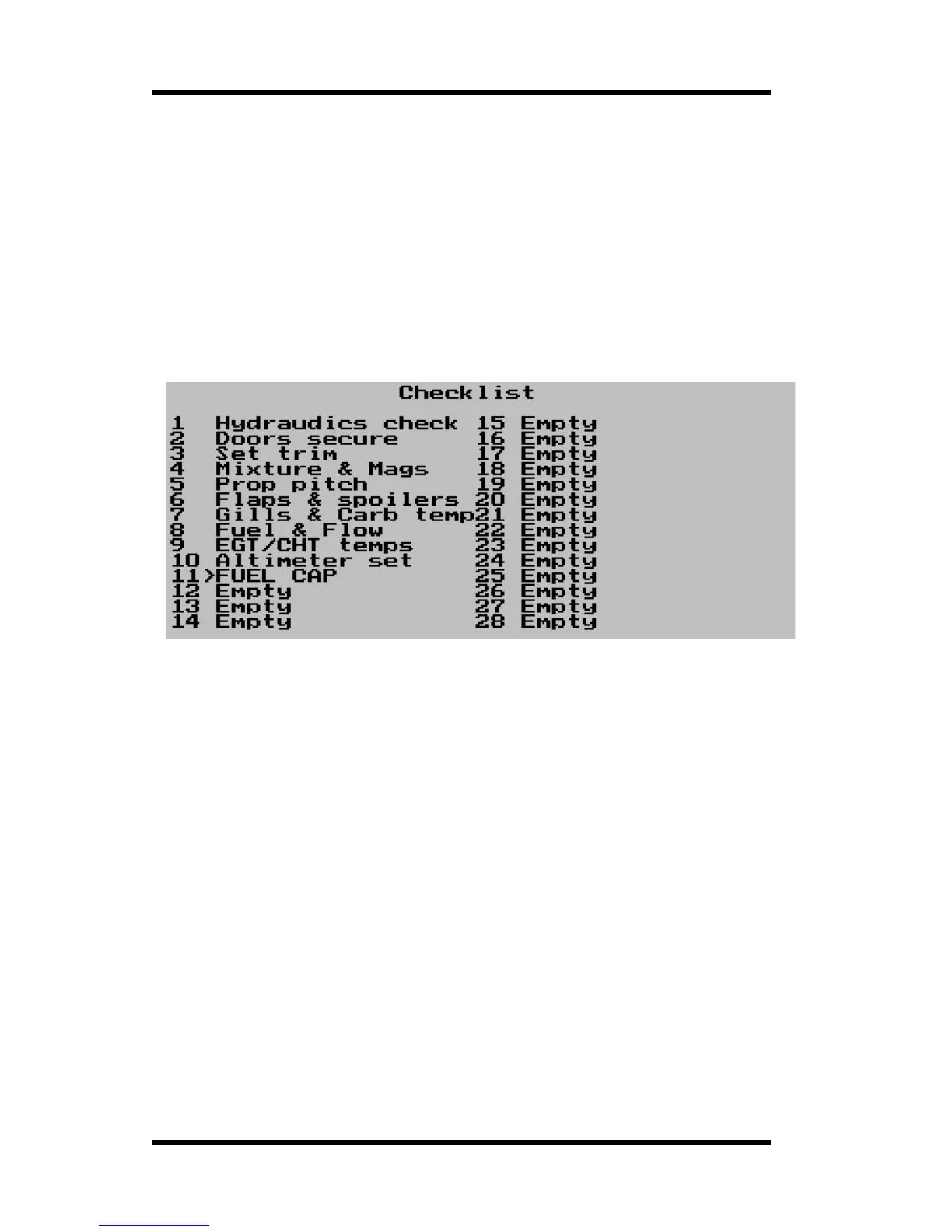 The Stratomaster Ultra contains a user definable pre-takeoff checklist. This checklist can be