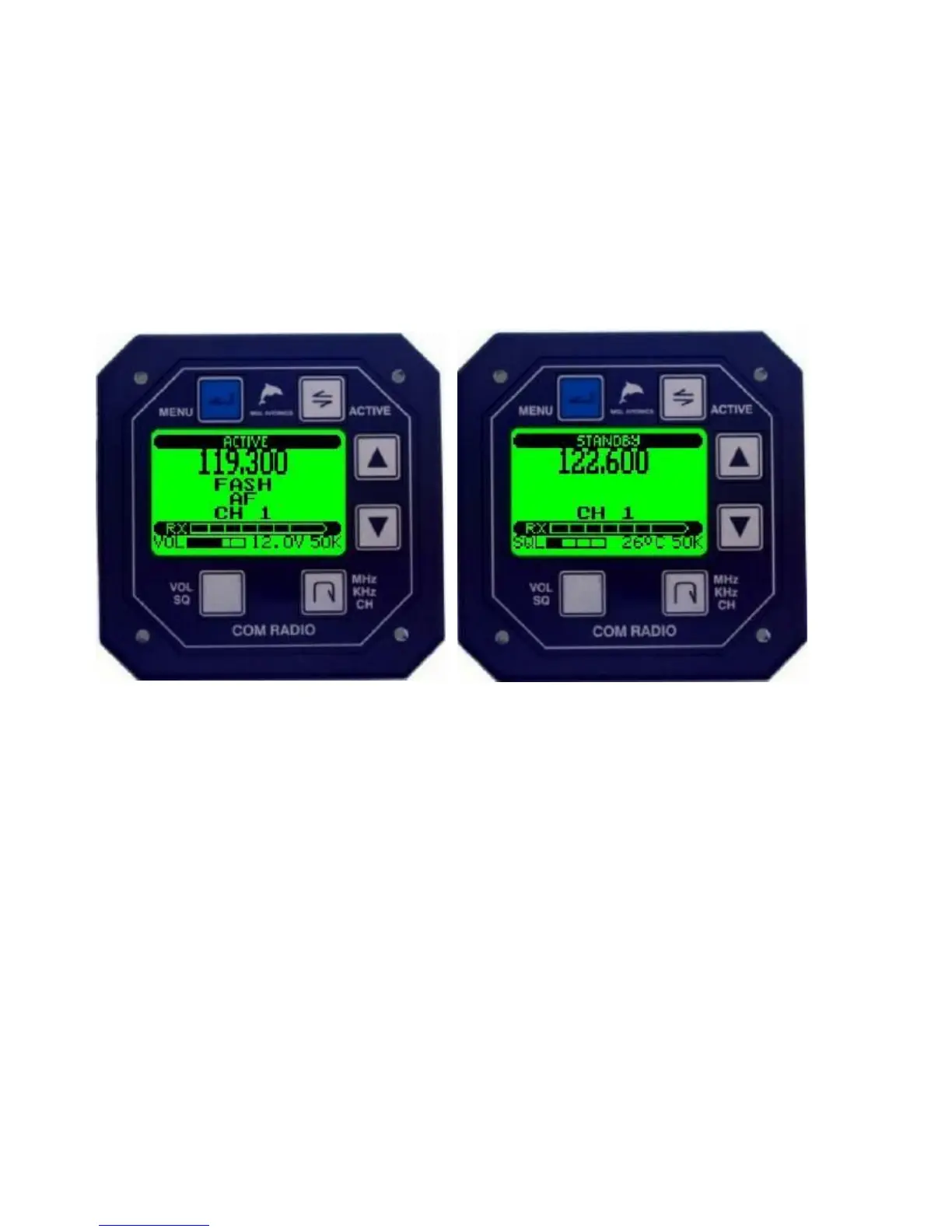 ● ACTIVE, MHZ,KHZ,CH and UP/DOWN buttons function interchangeably on both