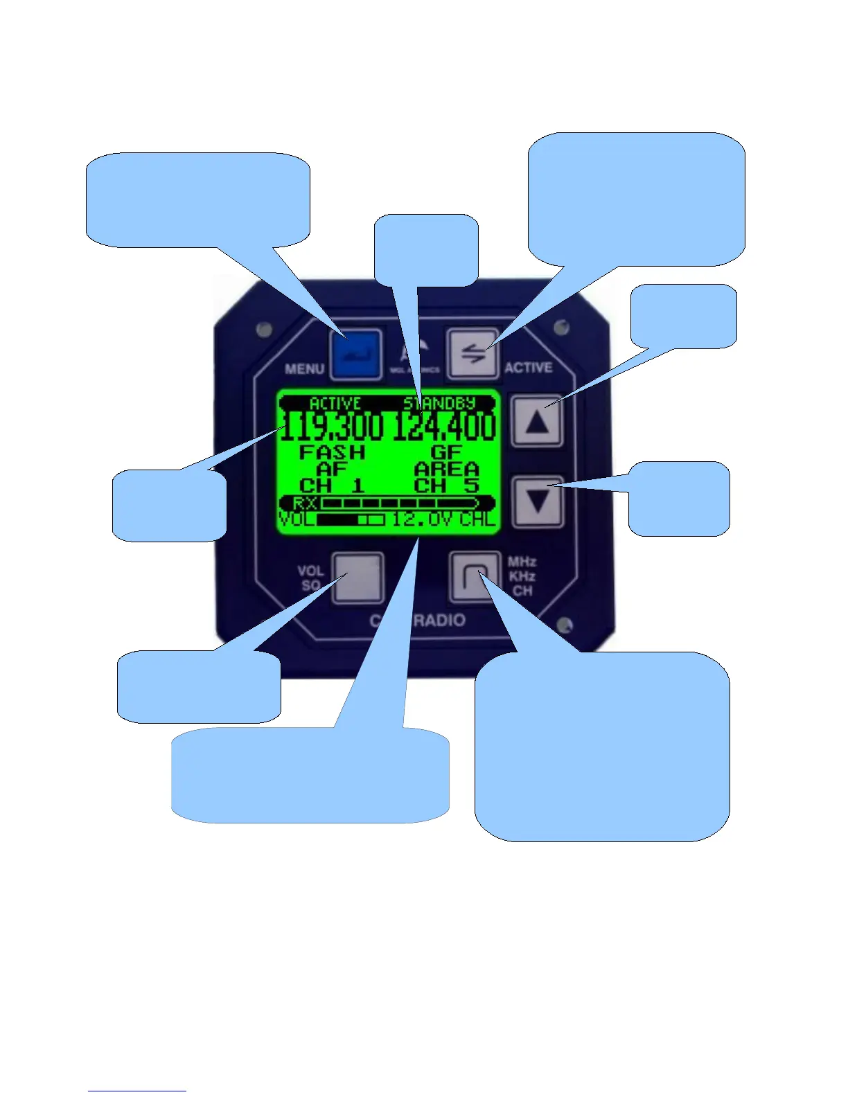active frequency. Active and standby frequencies may be interchanged using the “Active”
