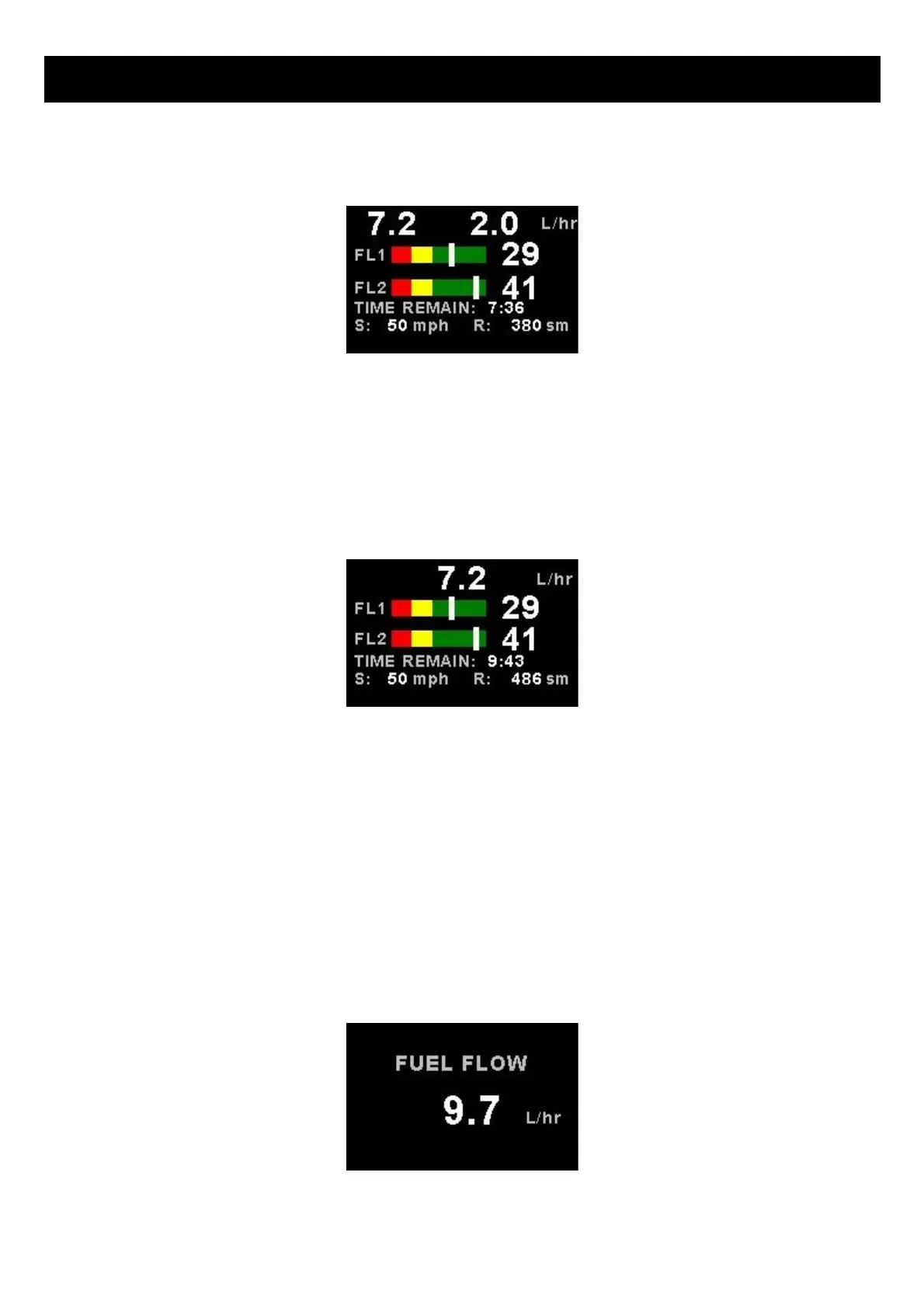 This mode is displayed if either fuel flow 1 or fuel flow 2 is selected and no fuel level senders are selected.