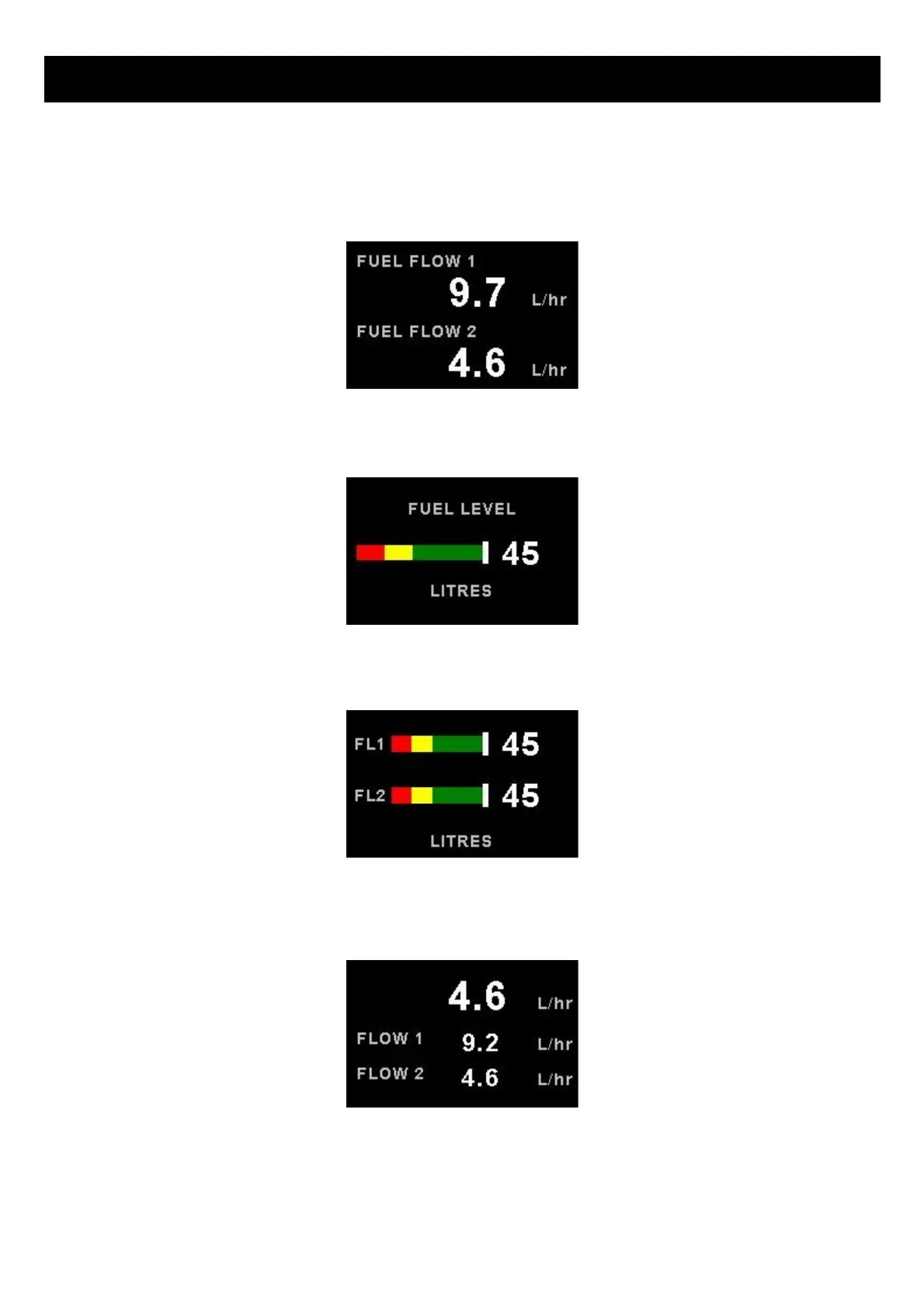 This mode is displayed if either fuel level 1 or fuel level 2 is selected. Both fuel flow senders are disabled.